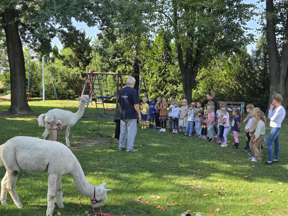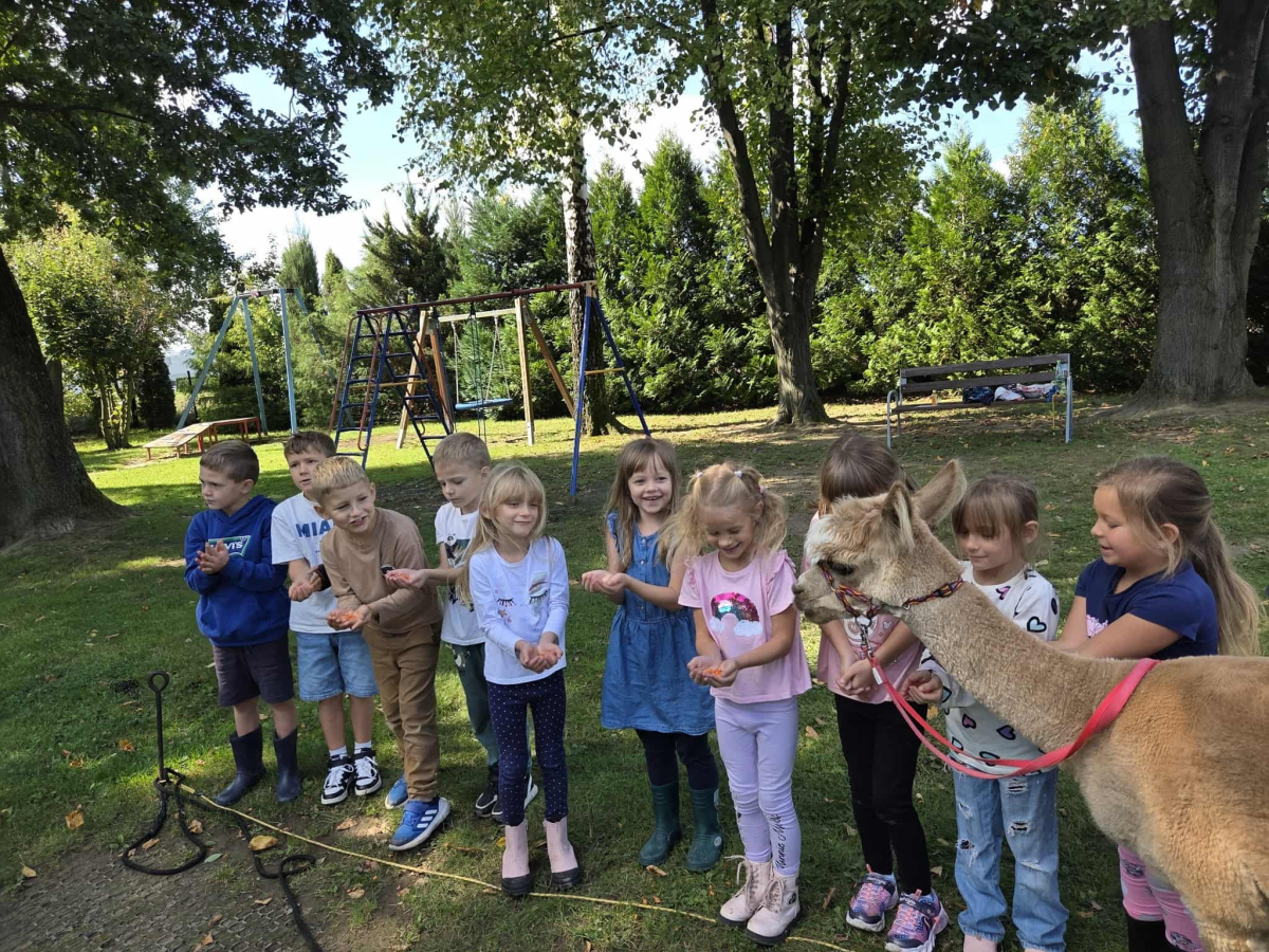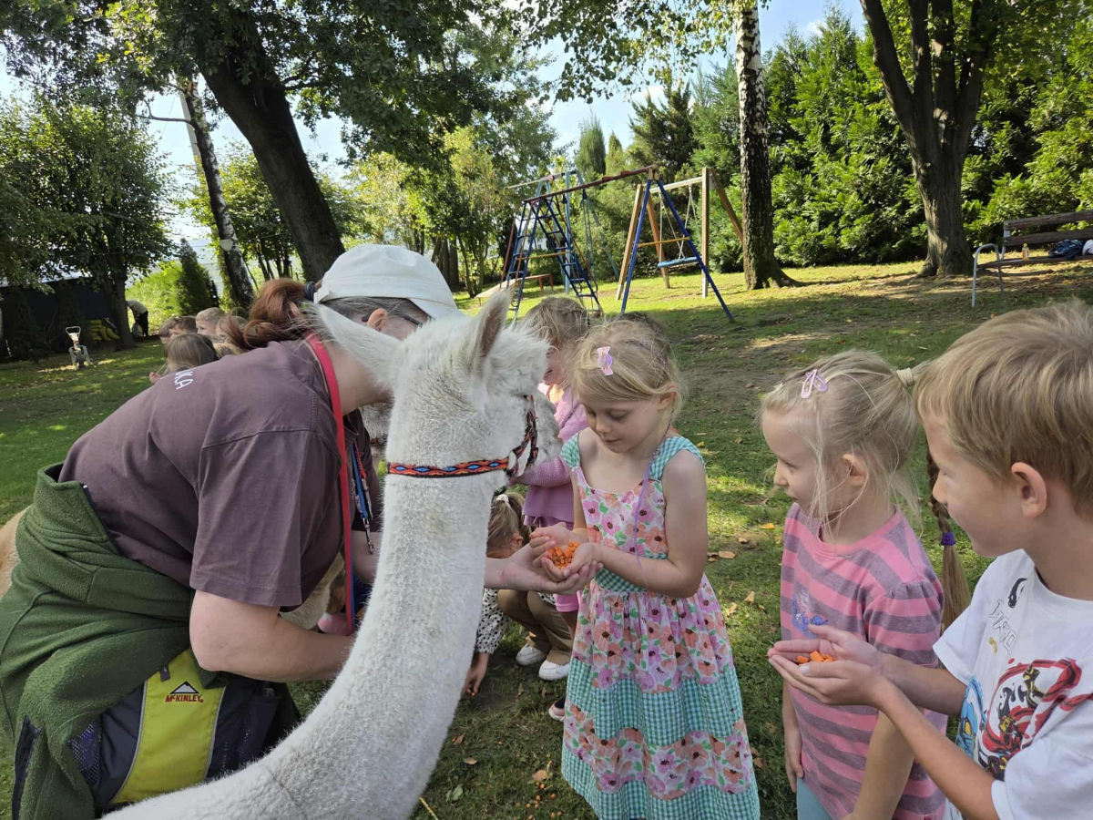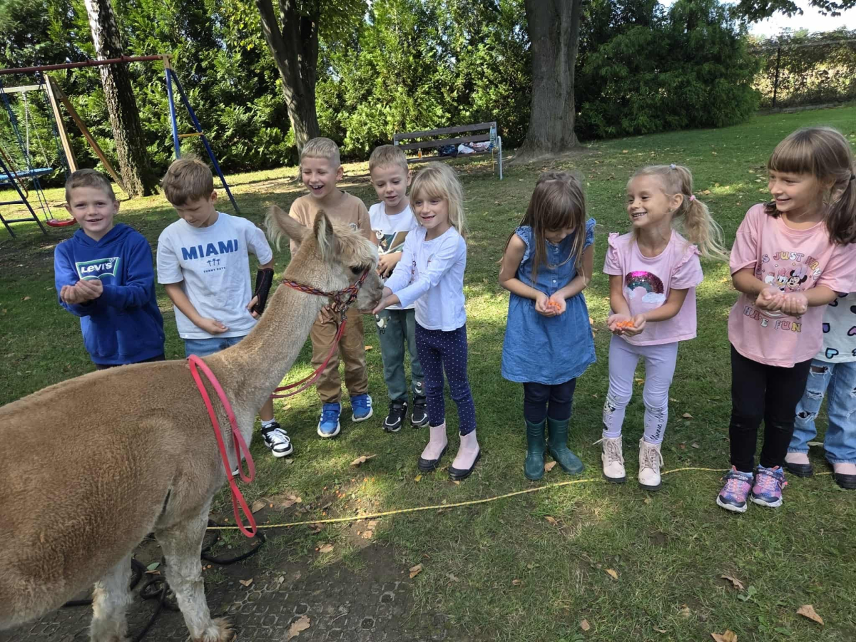 W dniu 19.09 odbyła się wyjątkowa Alpakoterapia. Skrzaty mogły nie tylko przytulać i karmić alpaki, ale także dowiedziały się wielu ciekawostek o ich zwyczajach i sposobie życia. Spotkanie było pełne radości i uśmiechów, a jednocześnie dzieci uczyły się empatii, cierpliwości i szacunku do zwierząt.