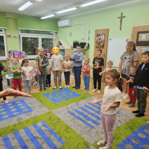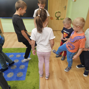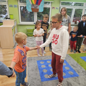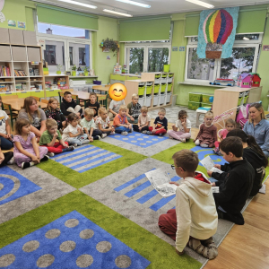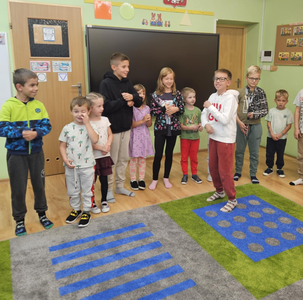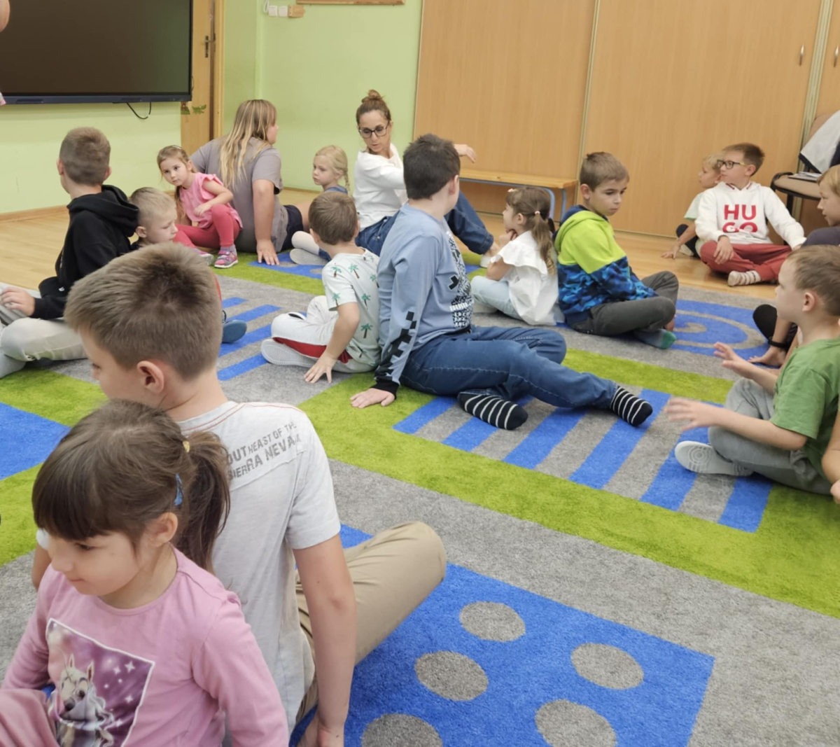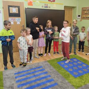 23 września grupę „Zajączki” odwiedzili uczniowie klasy 4a, rozpoczynając wspólną realizację innowacji pedagogicznej „Duży małemu, mały dużemu”.