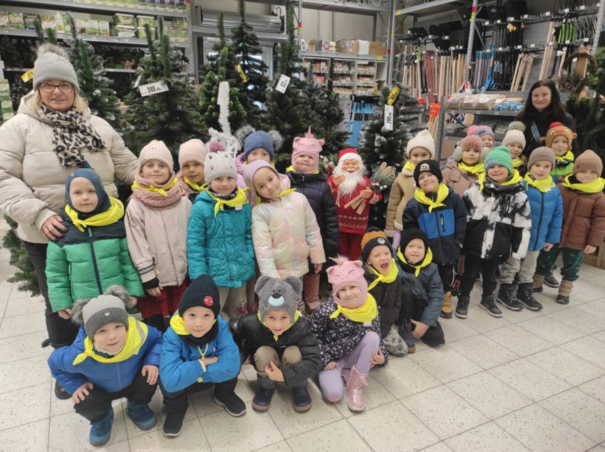 W dniu 3 grudnia grupa "Żabki" odwiedziła sklep Bricomarche w celu zakupienia choinki do sali przedszkolnej. Dzieci zostały bardzo miło i ciepło przyjęte oraz obdarowane prezentami.