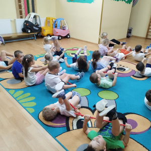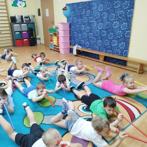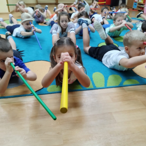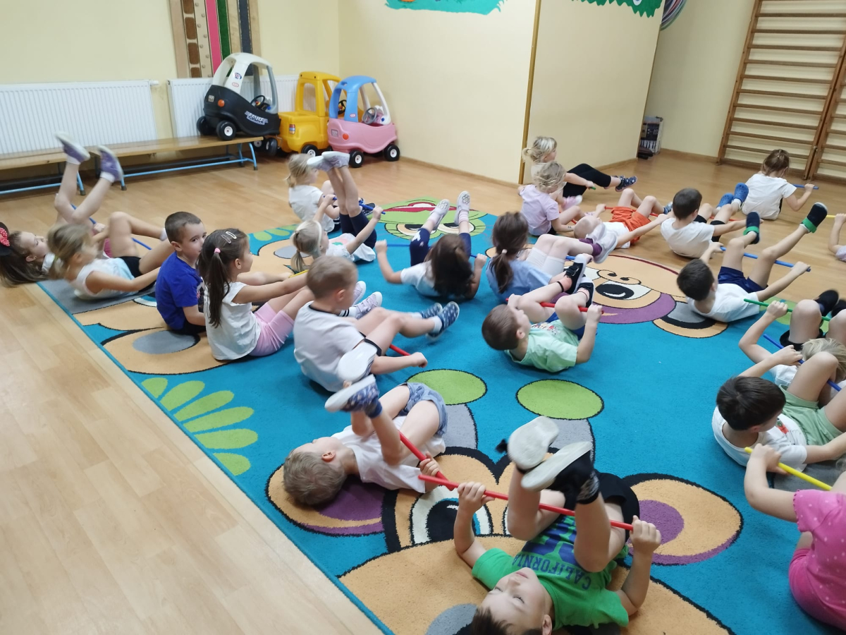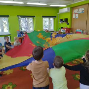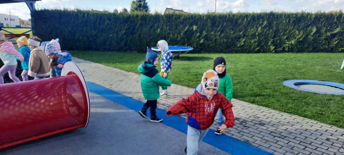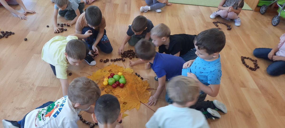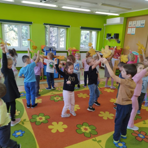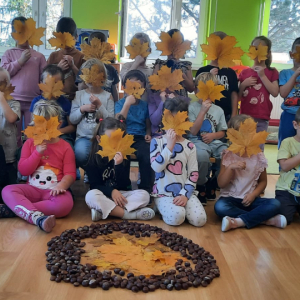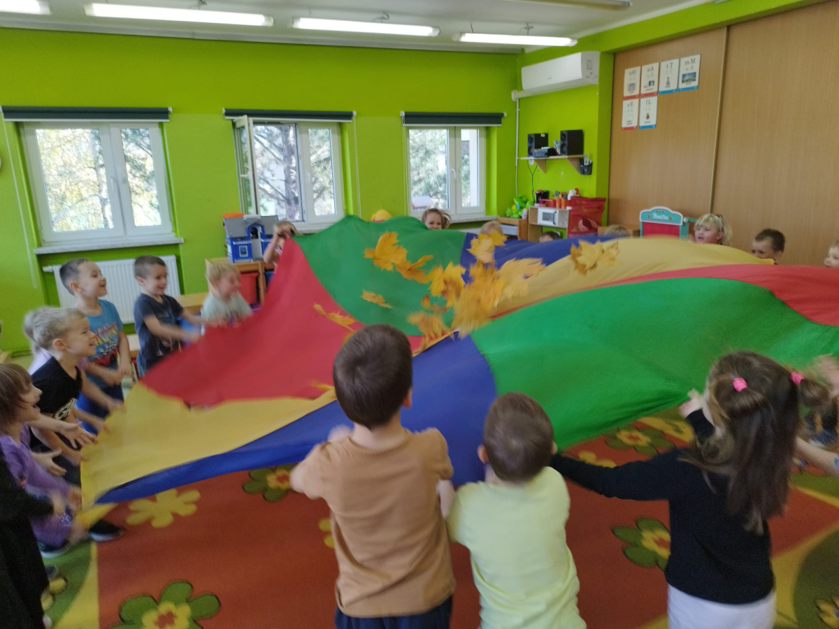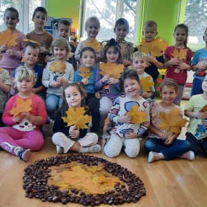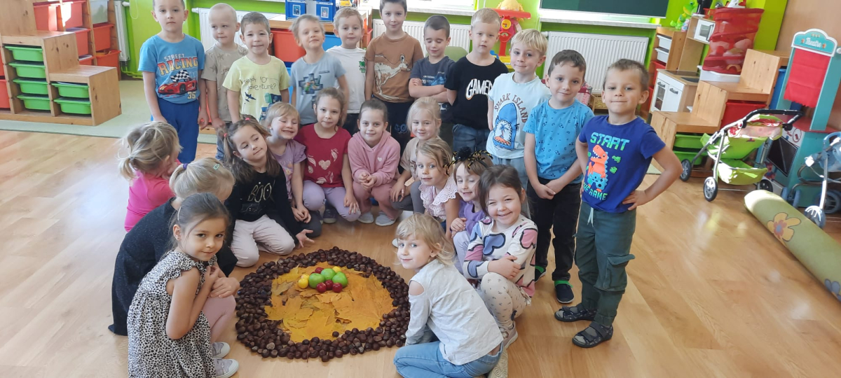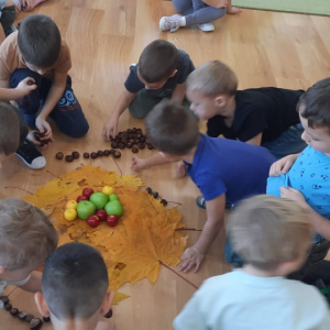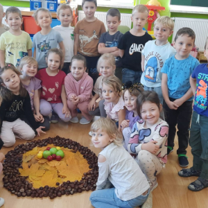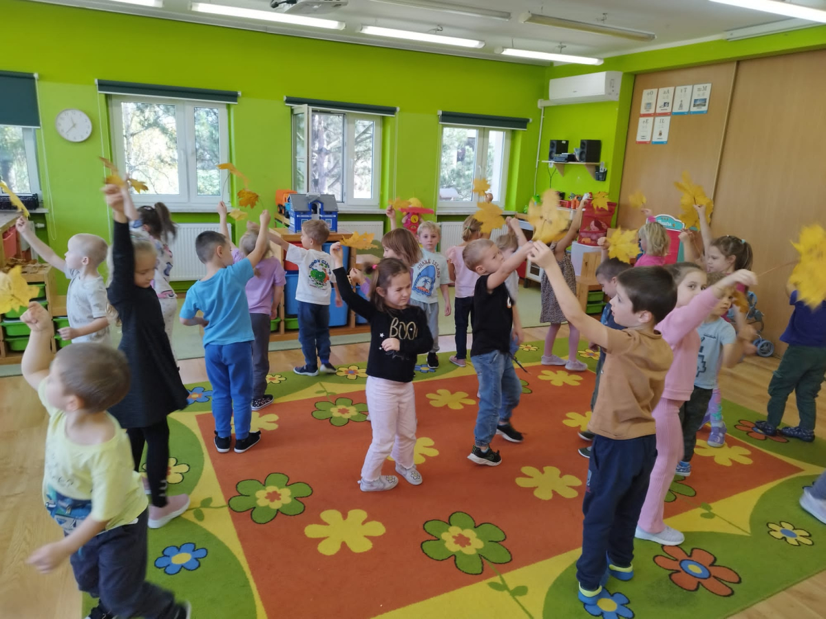Październik upłynął ,,Żabkom" pod znakiem intensywnej aktywności, zwłaszcza ruchowej. Dzieci z wielkim zaangażowaniem brały udział w ćwiczeniach na sali gimnastycznej. Ponadto korzystały z uroków jesieni na placu zabaw i podczas spacerów. Piękno krajobrazu przedszkolaki odzwierciedliły w pracach plastycznych. Zebrane dary jesieni służyły różnego rodzaju zabawom muzyczno - ruchowym oraz manipulacyjnym, takim jak: przeliczanie, dodawanie, odejmowanie, układanie rytmów. Miniony czas obfitował w doznania estetyczne, przyczynił się do doskonalenia posiadanych już umiejętności i nabywania nowych oraz wzmocnienia kondycji fizycznej.
