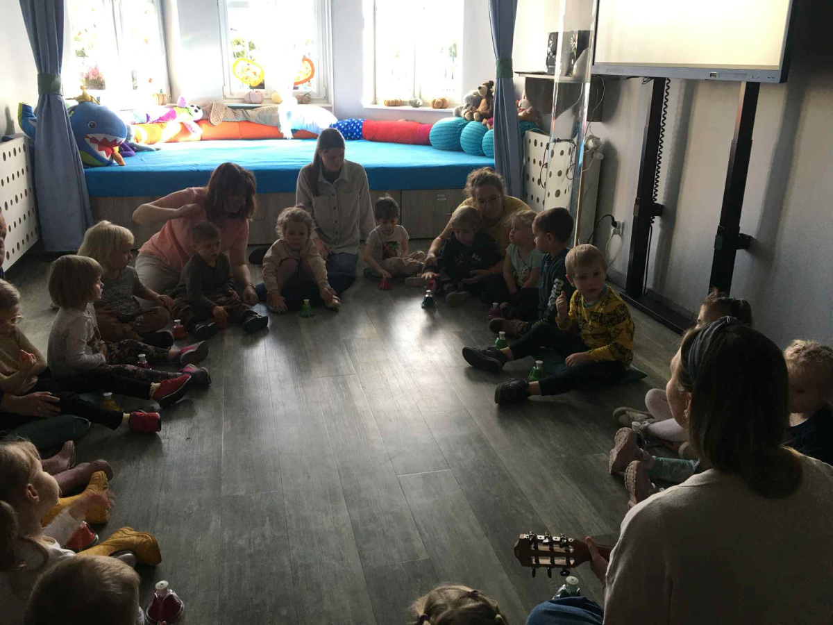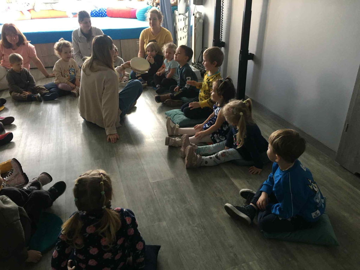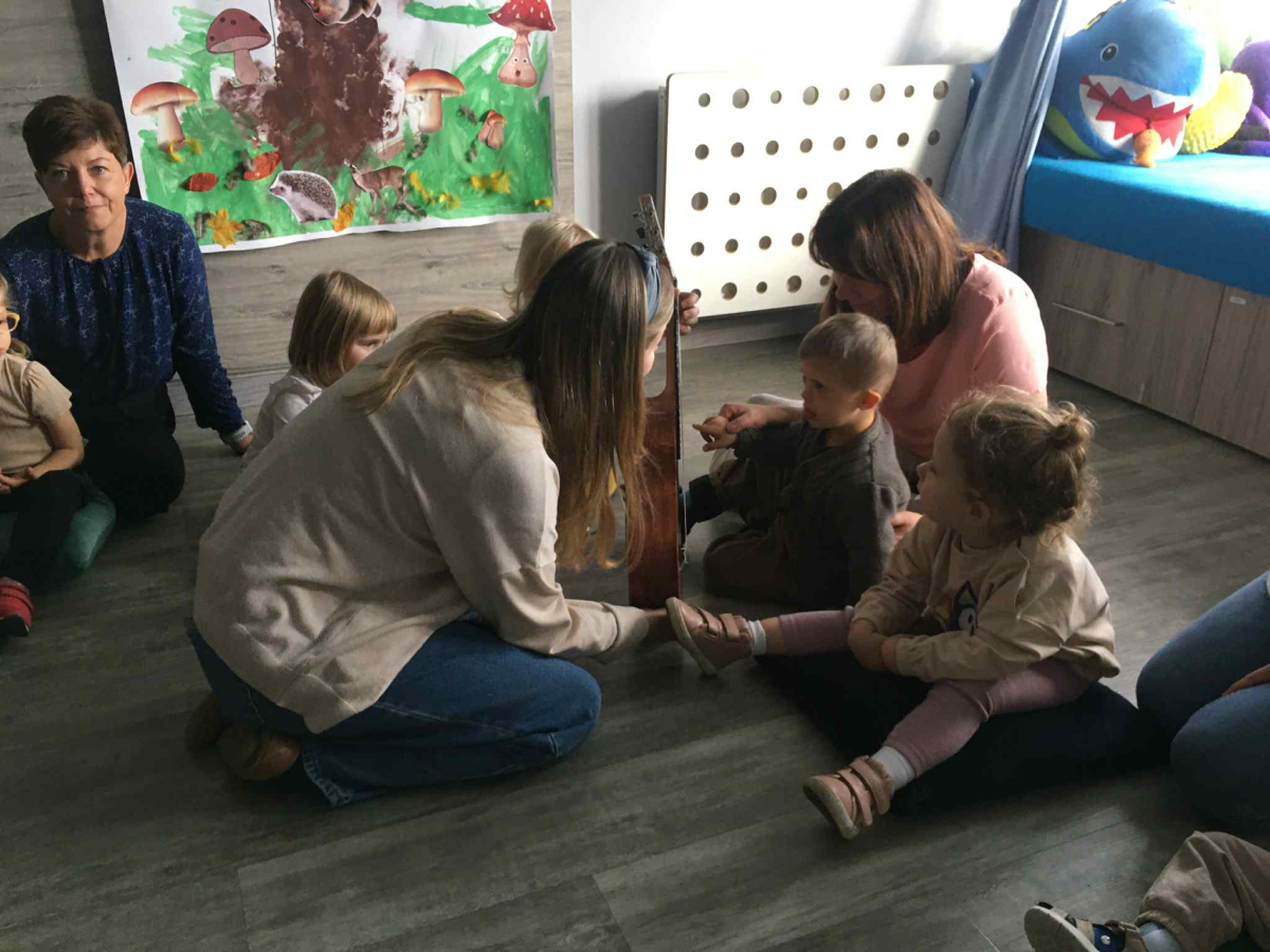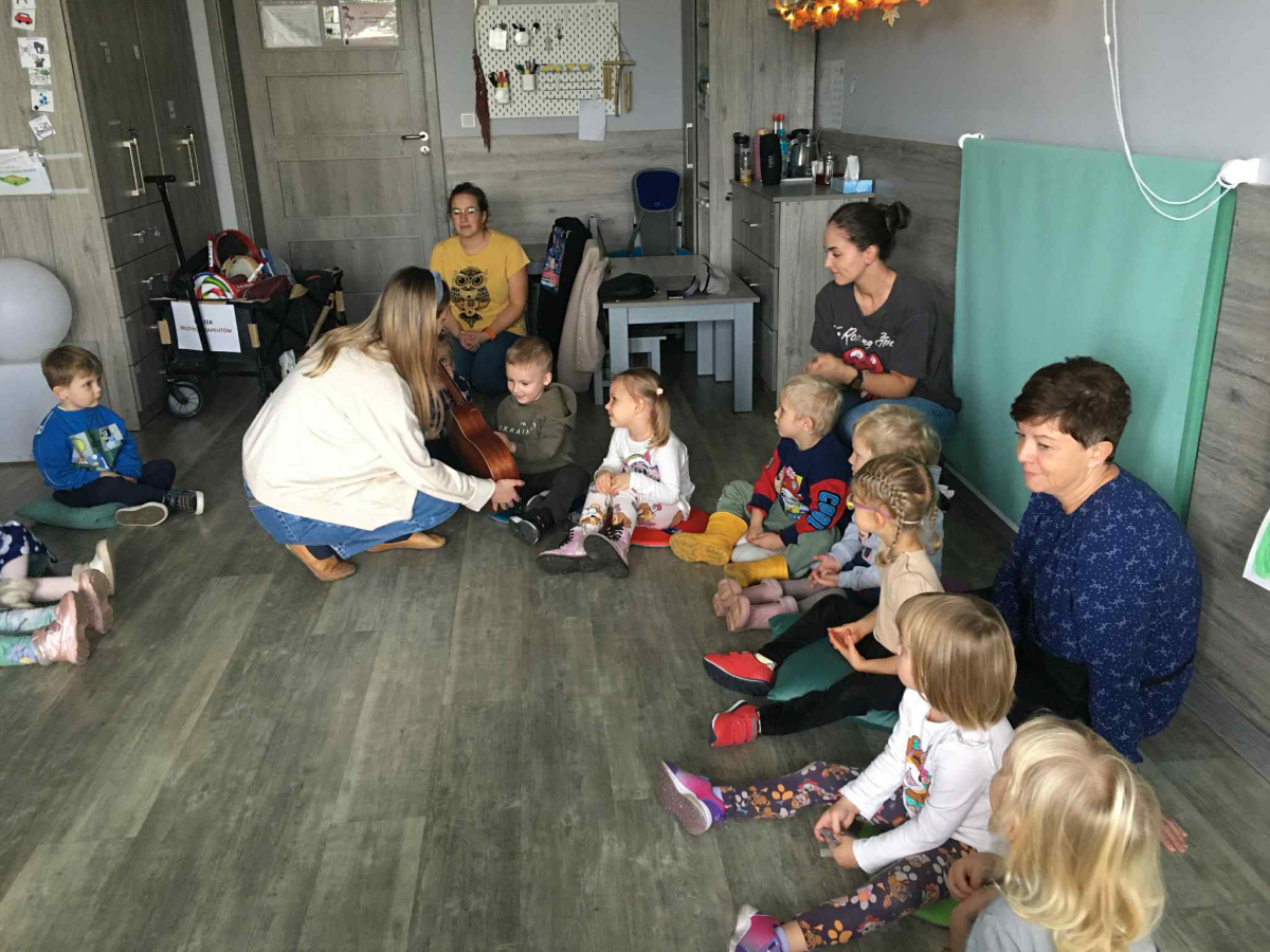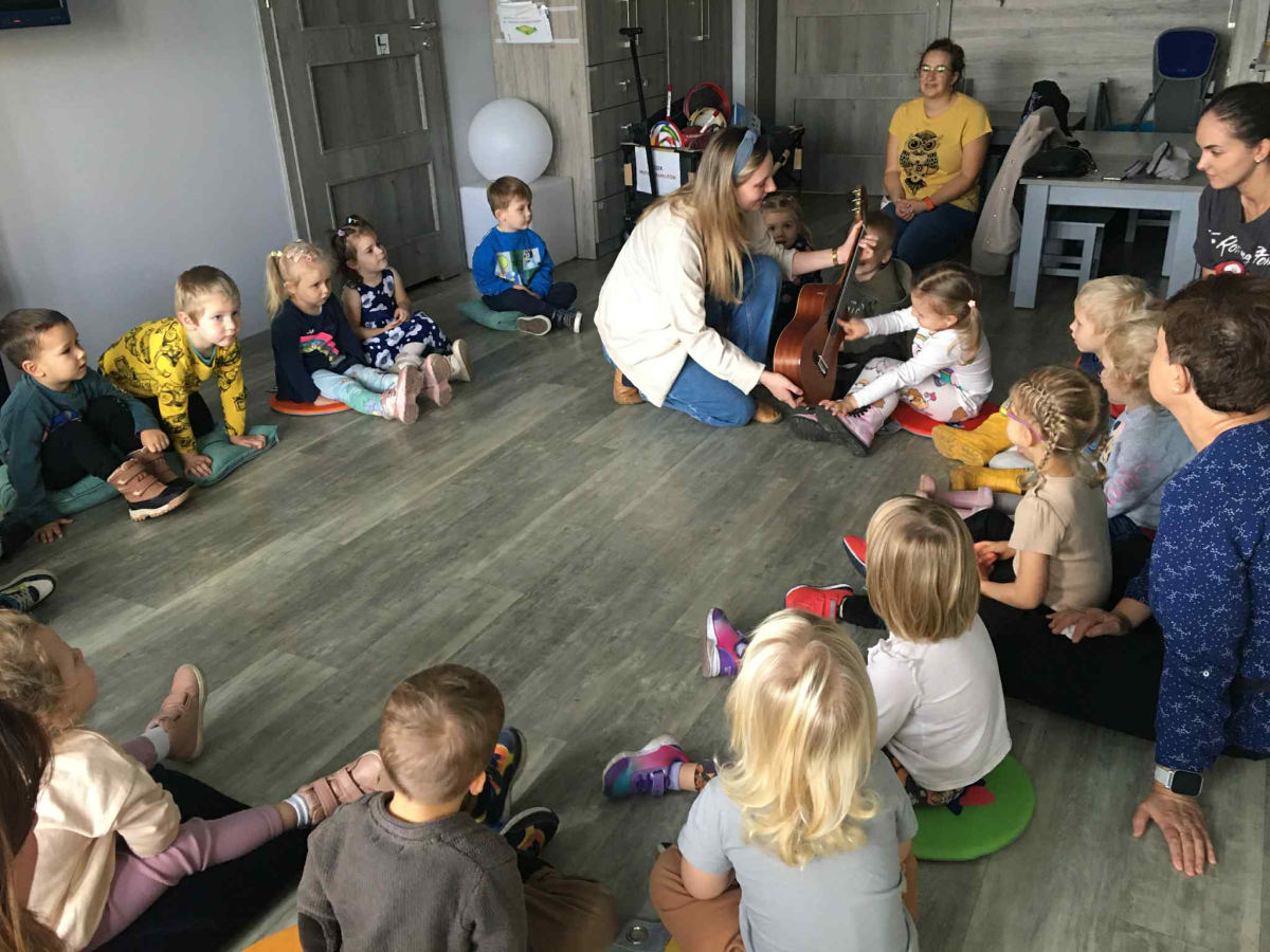 Podczas spotkania śpiewane były piosenki a cappella oraz przy akompaniamencie gitary. Uczestnicy mogli zagrać na grzechotkach, dzwonkach i innych instrumentach perkusyjnych, co wprowadziło dużo energii i spontaniczności. Nie zabrakło także zabaw z gumą sensoryczną, które w rytmie muzyki zachęcały do ruchu i współdziałania.