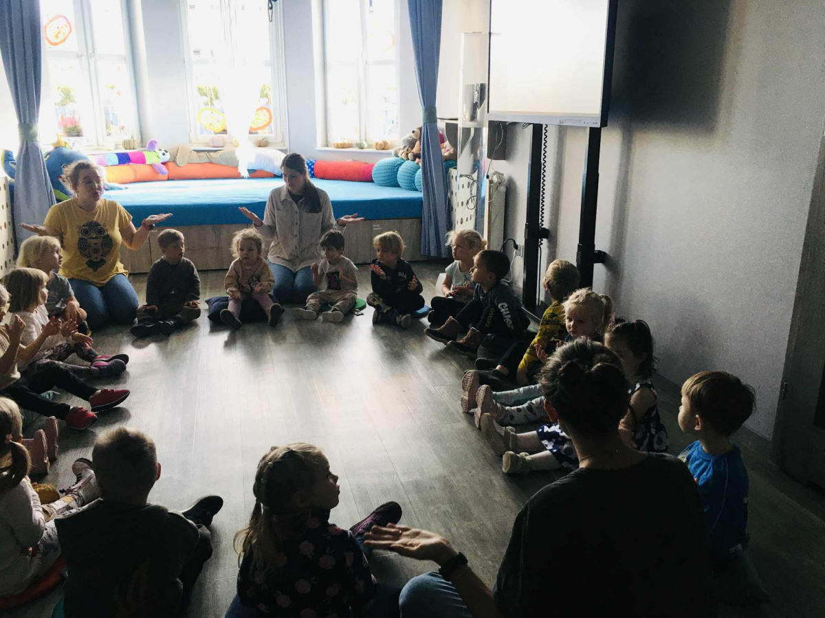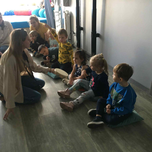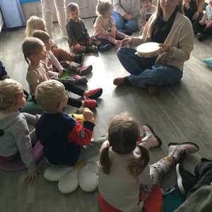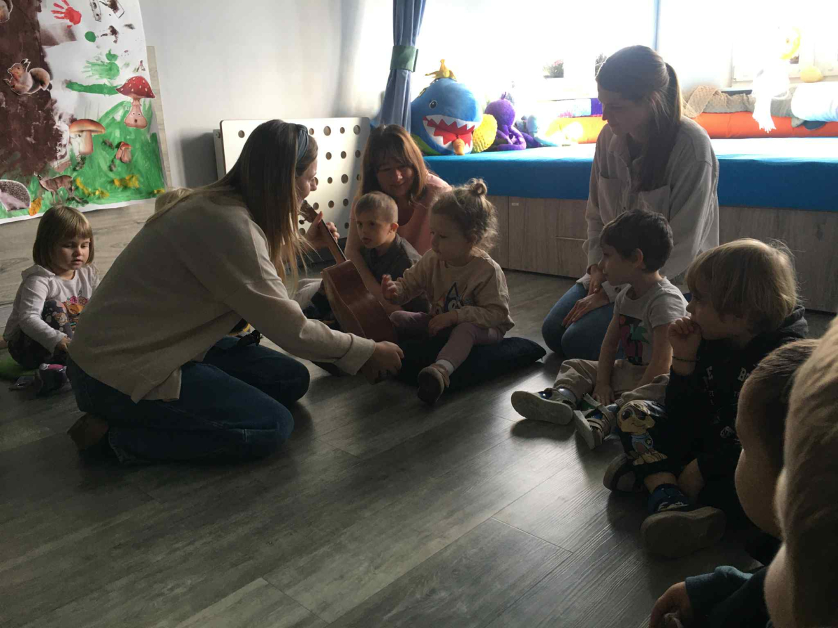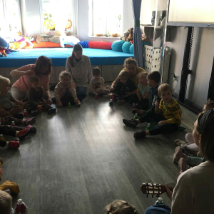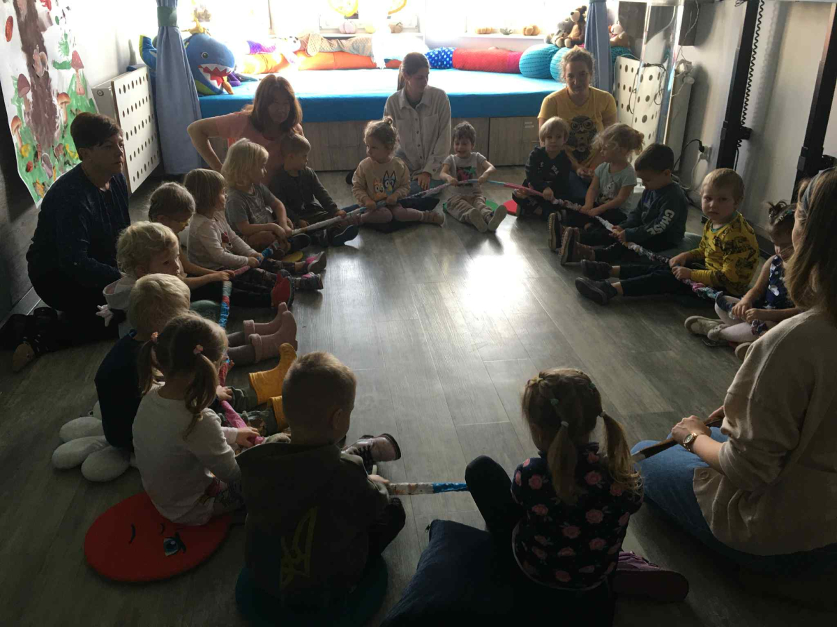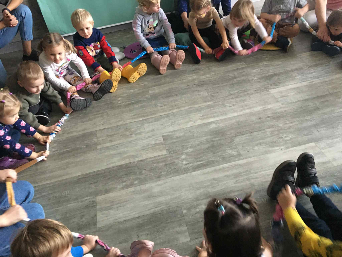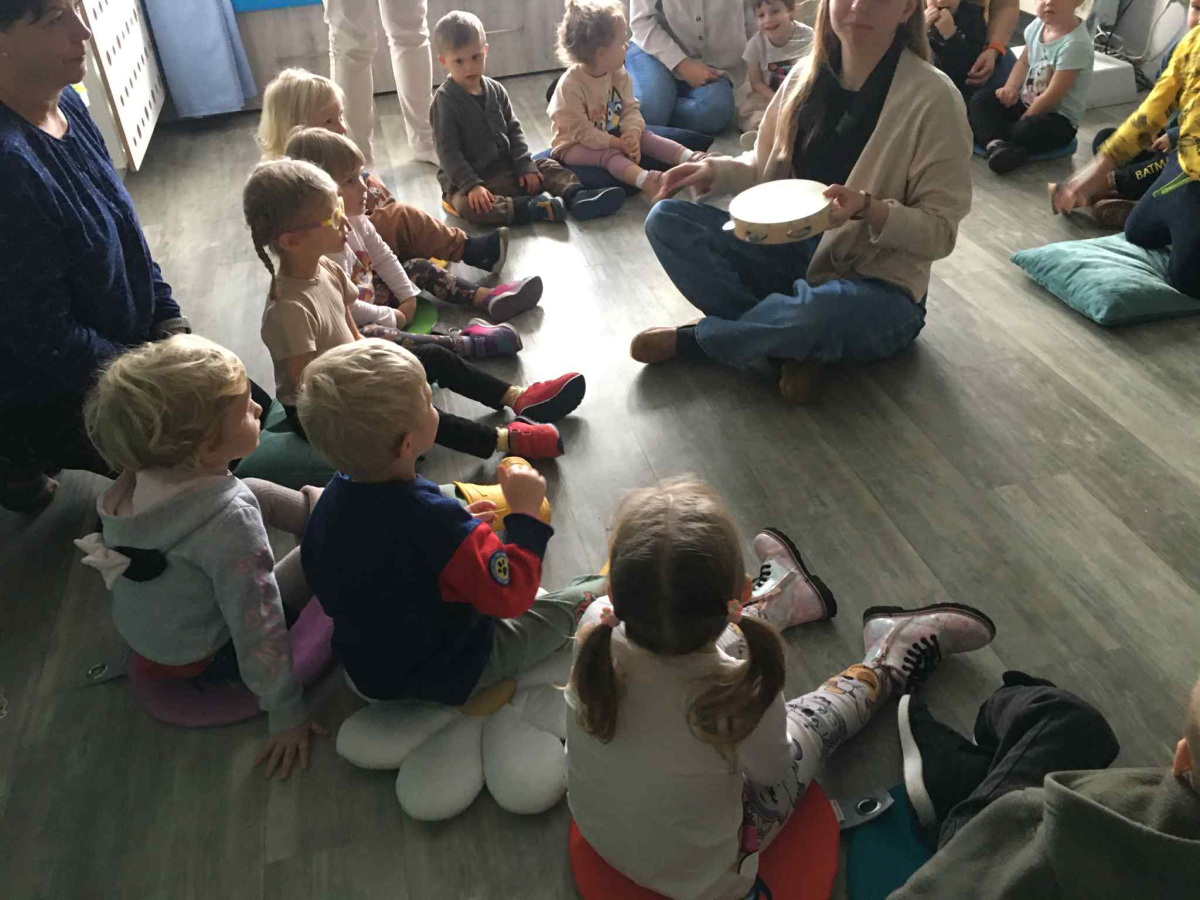 Podczas spotkania śpiewane były piosenki a cappella oraz przy akompaniamencie gitary. Uczestnicy mogli zagrać na grzechotkach, dzwonkach i innych instrumentach perkusyjnych, co wprowadziło dużo energii i spontaniczności. Nie zabrakło także zabaw z gumą sensoryczną, które w rytmie muzyki zachęcały do ruchu i współdziałania.