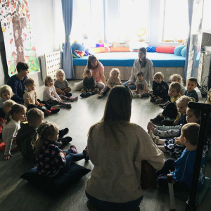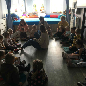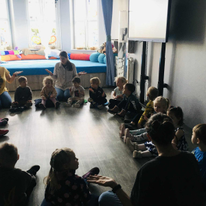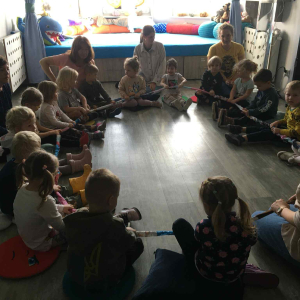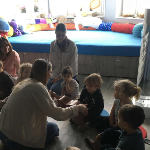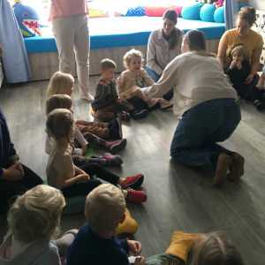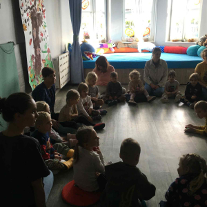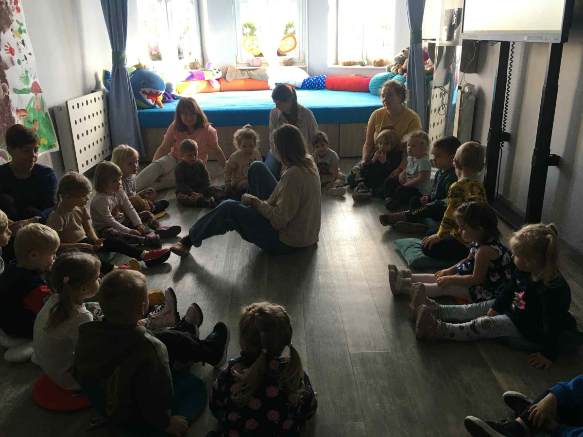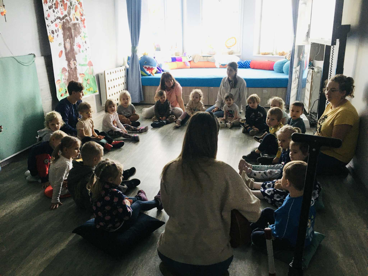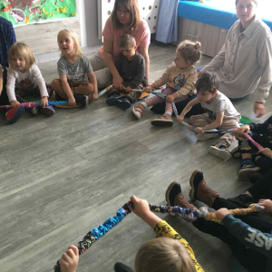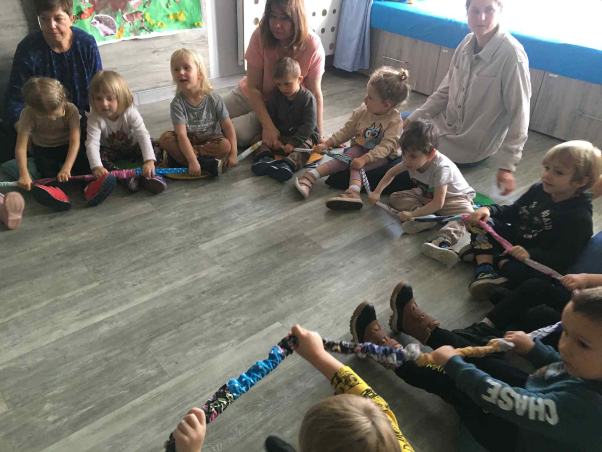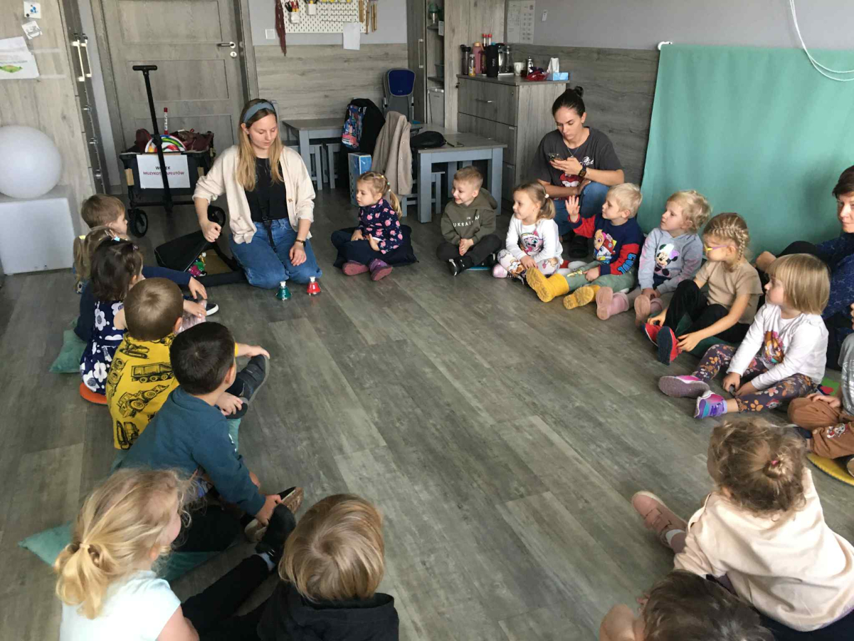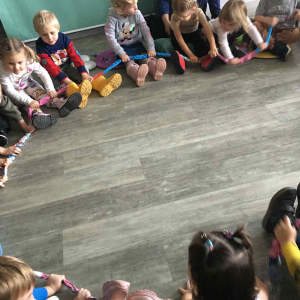 Podczas spotkania śpiewane były piosenki a cappella oraz przy akompaniamencie gitary. Uczestnicy mogli zagrać na grzechotkach, dzwonkach i innych instrumentach perkusyjnych, co wprowadziło dużo energii i spontaniczności. Nie zabrakło także zabaw z gumą sensoryczną, które w rytmie muzyki zachęcały do ruchu i współdziałania.