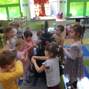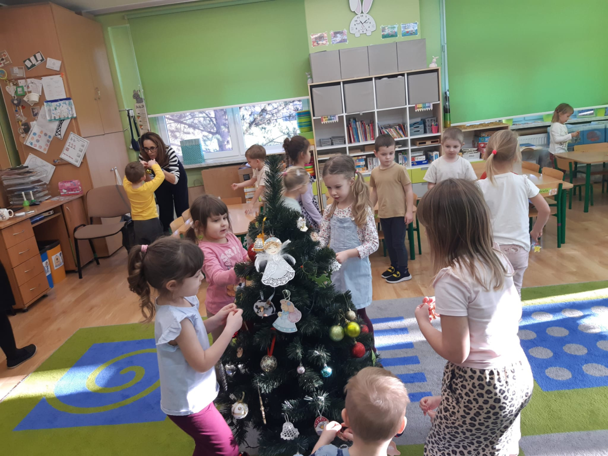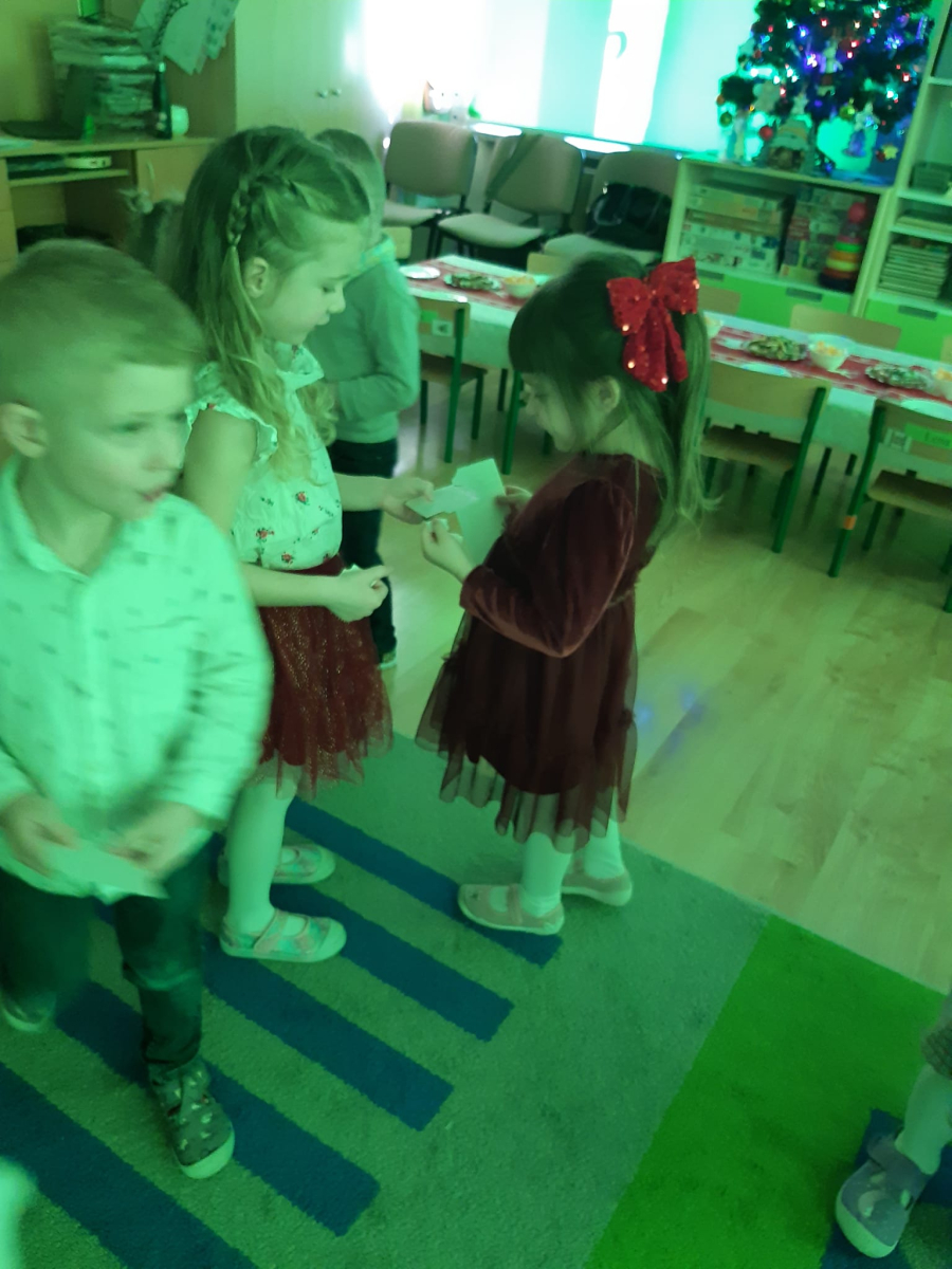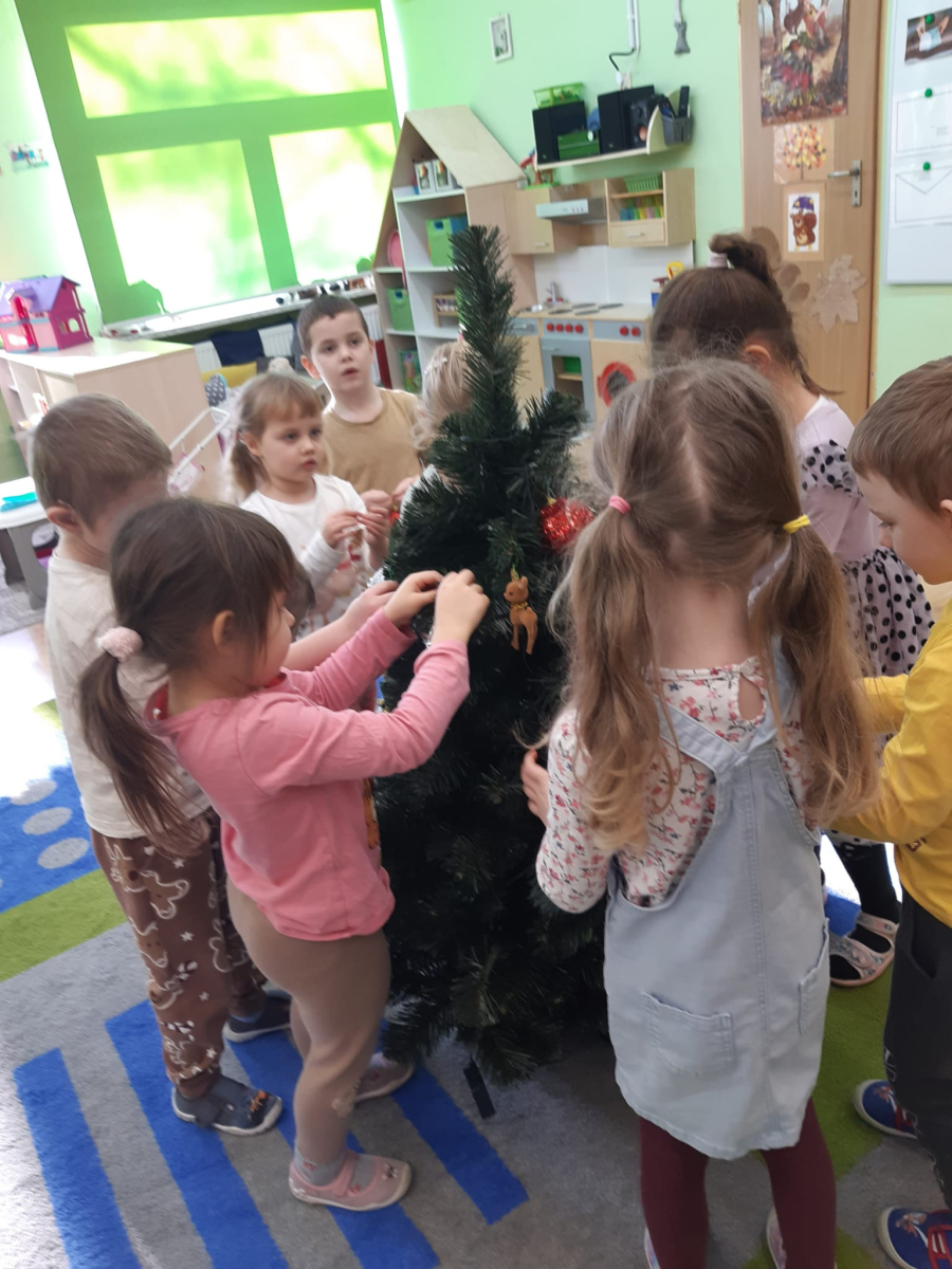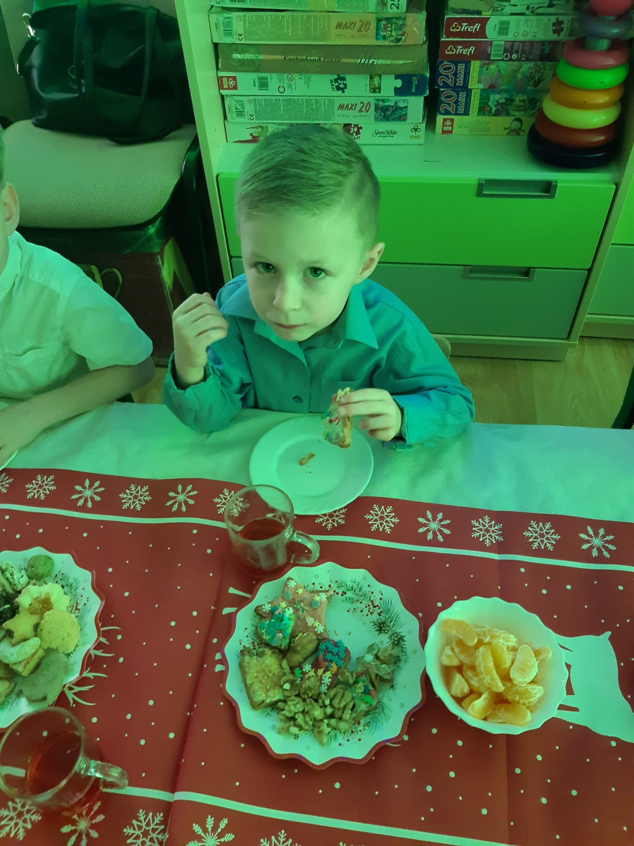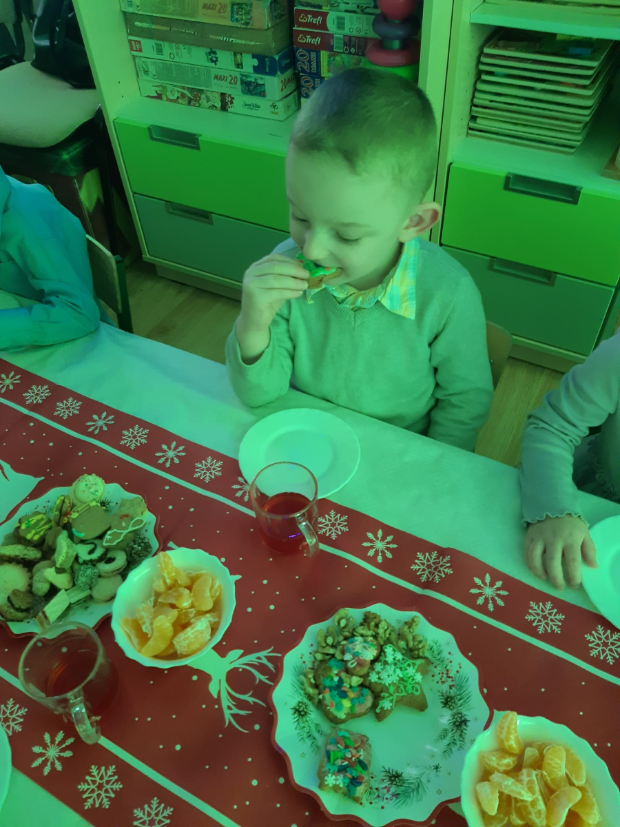 Dla dzieci nie tylko święta są wyjątkowe ale również przygotowania do nich są niezwykłe i pełne nietypowych wydarzeń. Przedszkolaki uczyły się w tym czasie kultywować tradycje, przygotowując świąteczne smakołyki, robiąc własnoręcznie ozdoby i ubierając choinkę. Wdrażały się do podtrzymywania pięknego zwyczaju składania życzeń, odwiedzając znajomych czy wysyłając kartki świąteczne z życzeniami. Poznawały też tradycje związane z wigilijnym stołem. Nie zabrakło też porządków świątecznych w sali, które kształtowały w nich umiejętność współdziałania i współodpowiedzialności za przestrzeń, w której funkcjonują jak mała przedszkolna rodzinka. Wszystko to było dla dzieci doświadczeniami wzbogacającymi ich wiedzę i umiejętności ale przede wszystkim sprawiało Zajączkom ogromną radość i satysfakcję. Uwieńczeniem czasu przygotowań była dla dzieci uroczysta wigilijka przedszkolna podczas której śpiewały kolędy, przełamały się opłatkiem, częstowały się smakołykami i spędzały czas na beztroskiej zabawie.