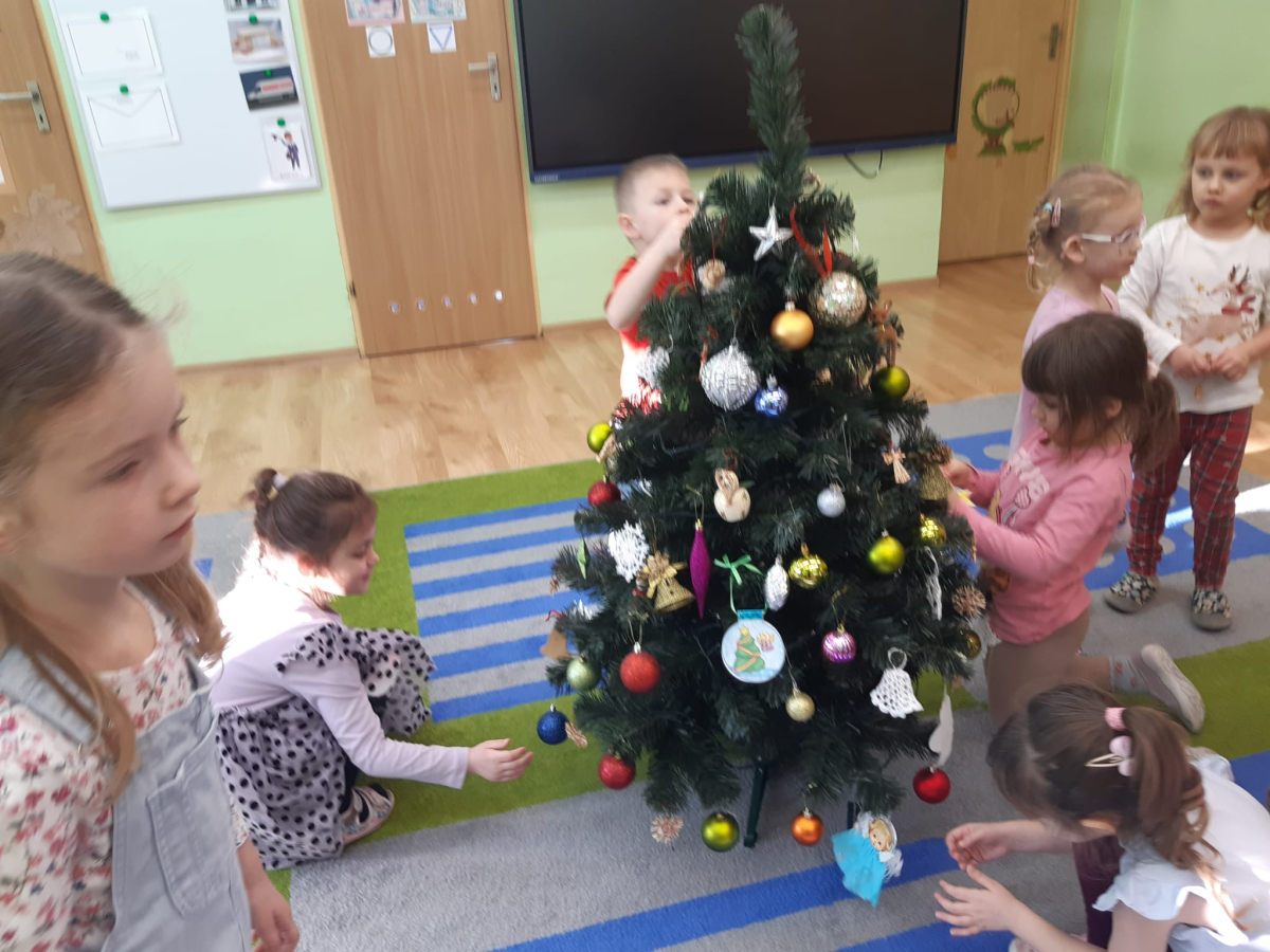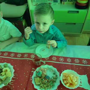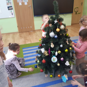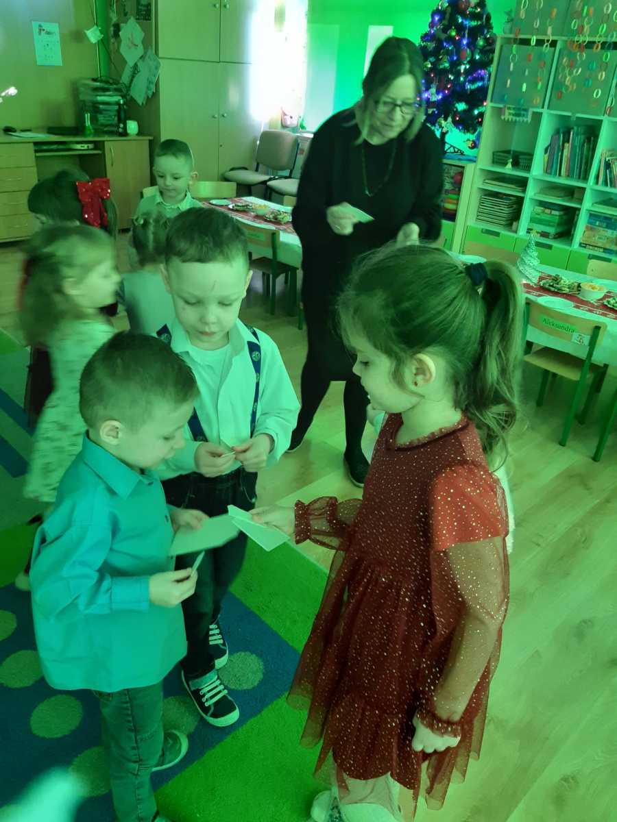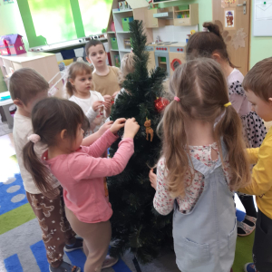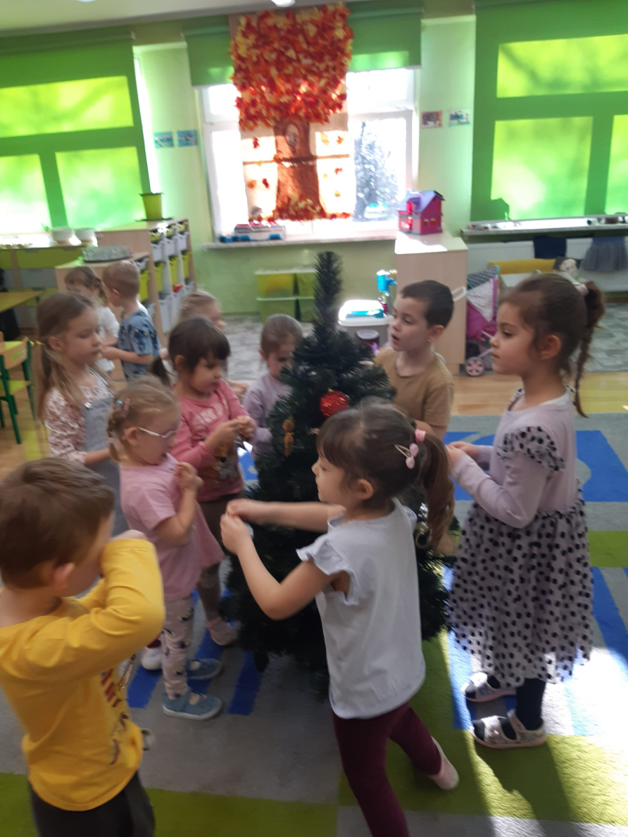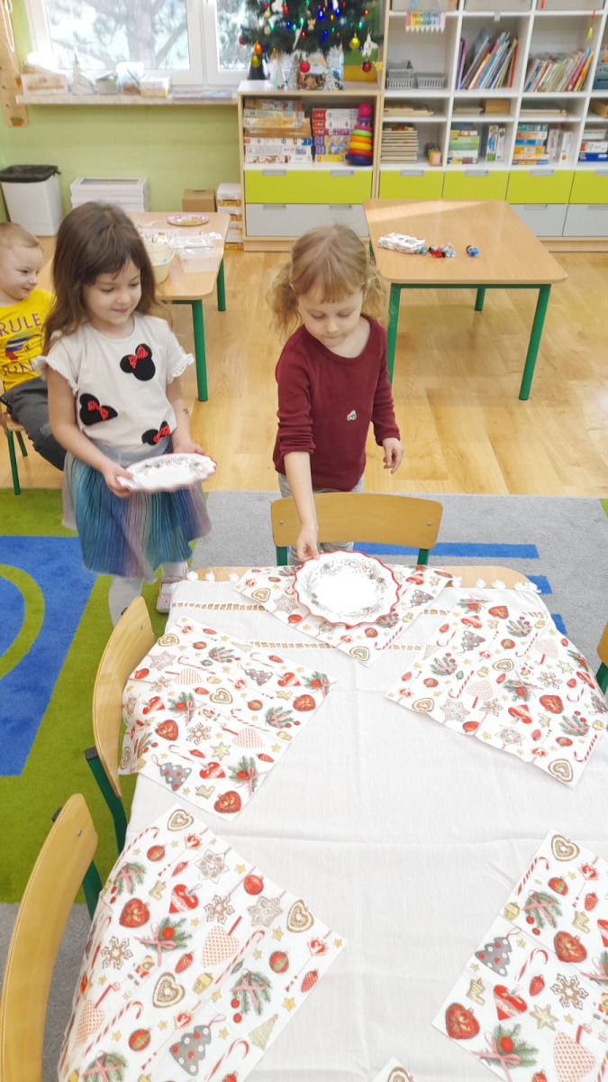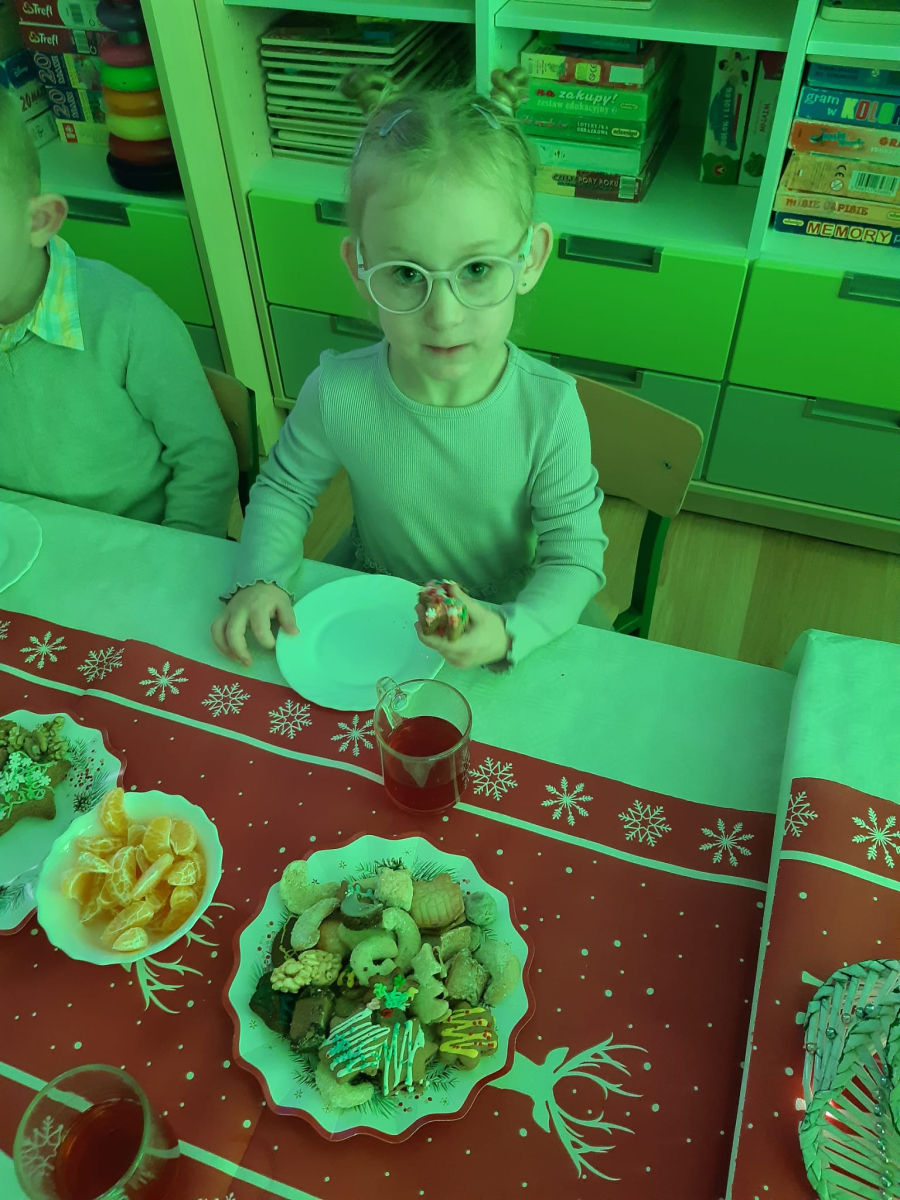 Dla dzieci nie tylko święta są wyjątkowe ale również przygotowania do nich są niezwykłe i pełne nietypowych wydarzeń. Przedszkolaki uczyły się w tym czasie kultywować tradycje, przygotowując świąteczne smakołyki, robiąc własnoręcznie ozdoby i ubierając choinkę. Wdrażały się do podtrzymywania pięknego zwyczaju składania życzeń, odwiedzając znajomych czy wysyłając kartki świąteczne z życzeniami. Poznawały też tradycje związane z wigilijnym stołem. Nie zabrakło też porządków świątecznych w sali, które kształtowały w nich umiejętność współdziałania i współodpowiedzialności za przestrzeń, w której funkcjonują jak mała przedszkolna rodzinka. Wszystko to było dla dzieci doświadczeniami wzbogacającymi ich wiedzę i umiejętności ale przede wszystkim sprawiało Zajączkom ogromną radość i satysfakcję. Uwieńczeniem czasu przygotowań była dla dzieci uroczysta wigilijka przedszkolna podczas której śpiewały kolędy, przełamały się opłatkiem, częstowały się smakołykami i spędzały czas na beztroskiej zabawie.