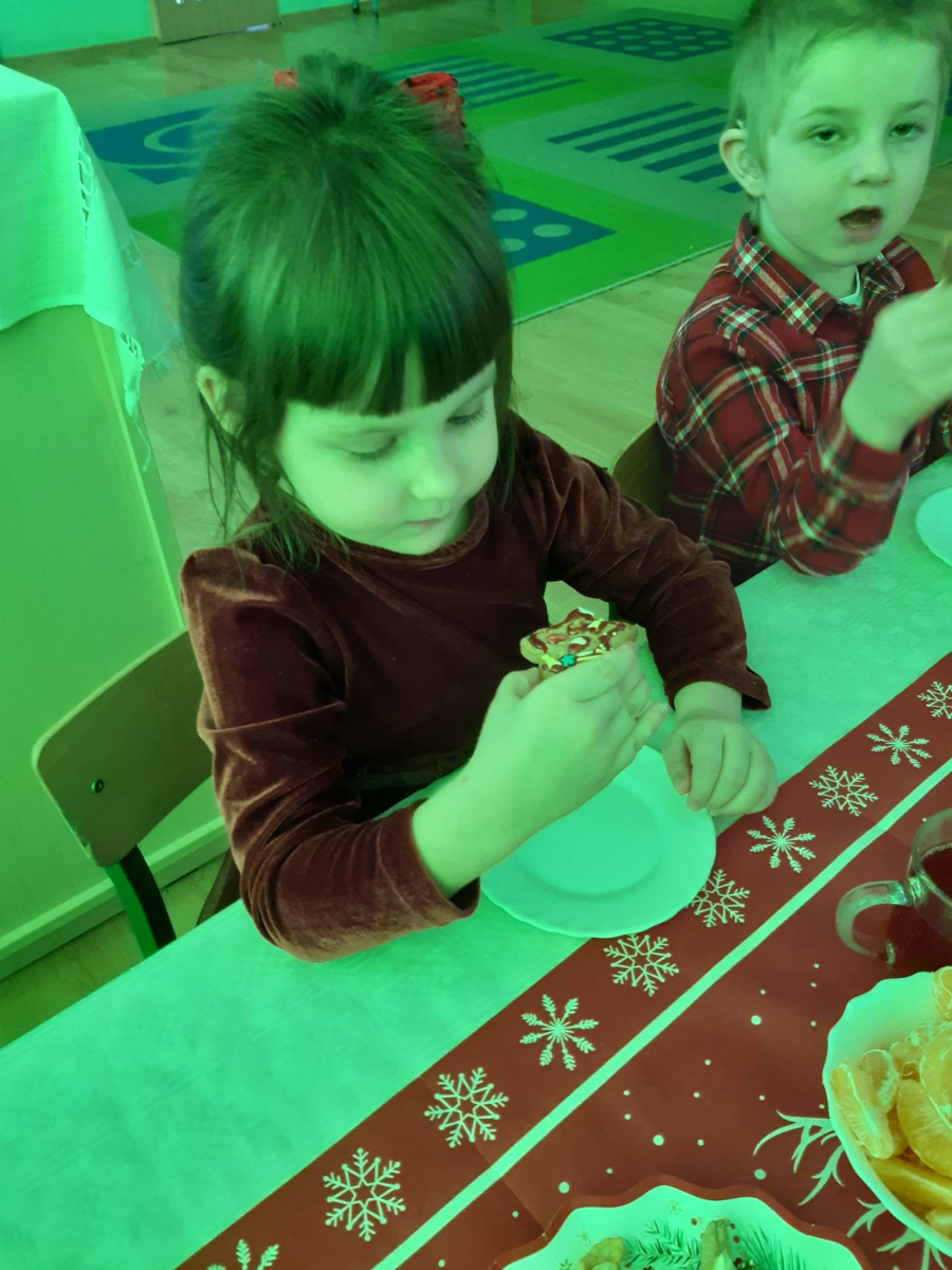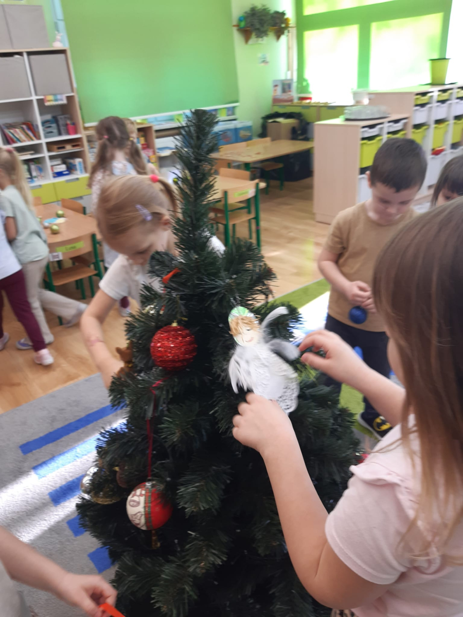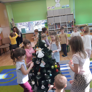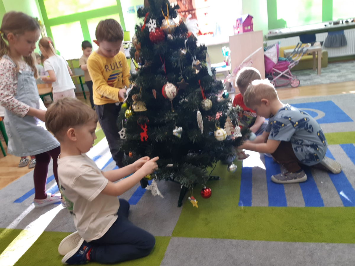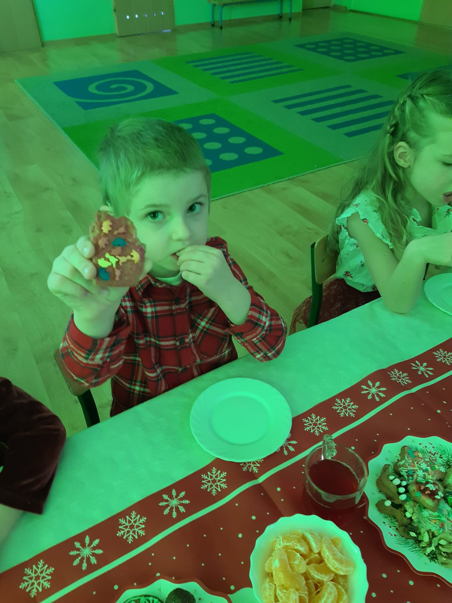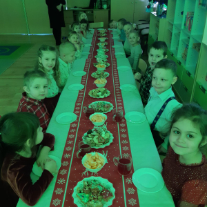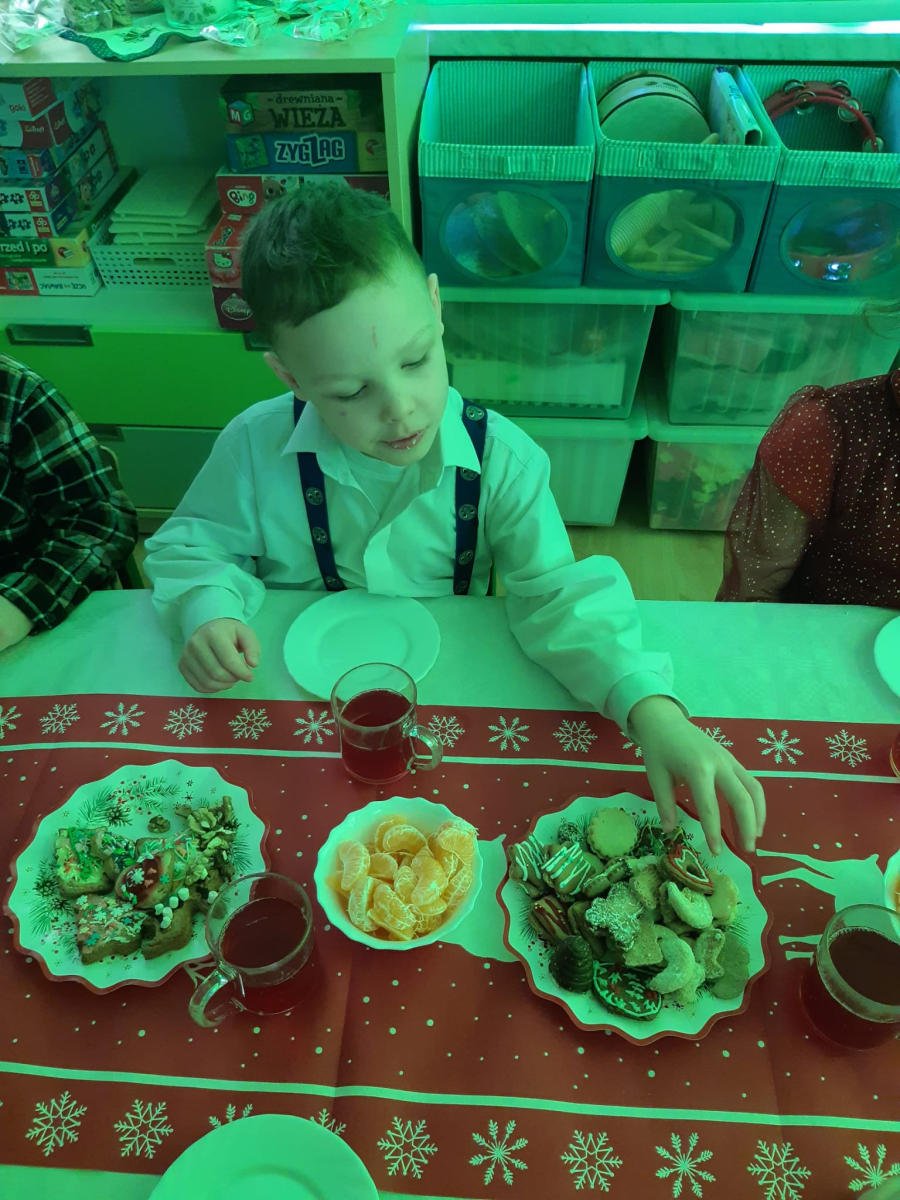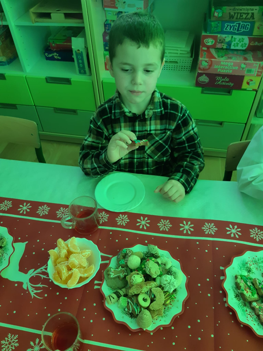 Dla dzieci nie tylko święta są wyjątkowe ale również przygotowania do nich są niezwykłe i pełne nietypowych wydarzeń. Przedszkolaki uczyły się w tym czasie kultywować tradycje, przygotowując świąteczne smakołyki, robiąc własnoręcznie ozdoby i ubierając choinkę. Wdrażały się do podtrzymywania pięknego zwyczaju składania życzeń, odwiedzając znajomych czy wysyłając kartki świąteczne z życzeniami. Poznawały też tradycje związane z wigilijnym stołem. Nie zabrakło też porządków świątecznych w sali, które kształtowały w nich umiejętność współdziałania i współodpowiedzialności za przestrzeń, w której funkcjonują jak mała przedszkolna rodzinka. Wszystko to było dla dzieci doświadczeniami wzbogacającymi ich wiedzę i umiejętności ale przede wszystkim sprawiało Zajączkom ogromną radość i satysfakcję. Uwieńczeniem czasu przygotowań była dla dzieci uroczysta wigilijka przedszkolna podczas której śpiewały kolędy, przełamały się opłatkiem, częstowały się smakołykami i spędzały czas na beztroskiej zabawie.