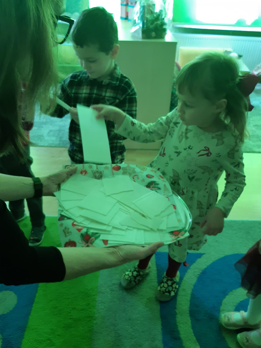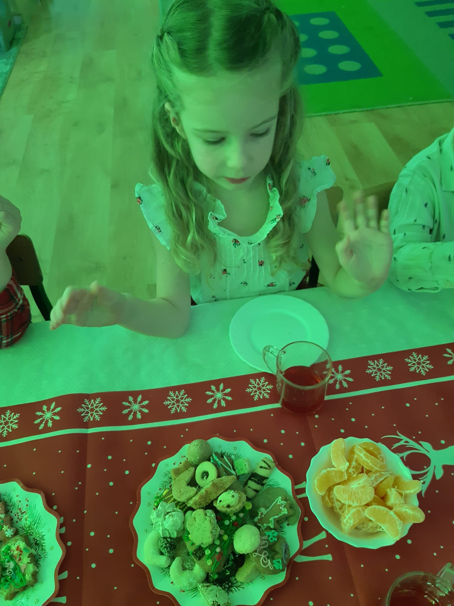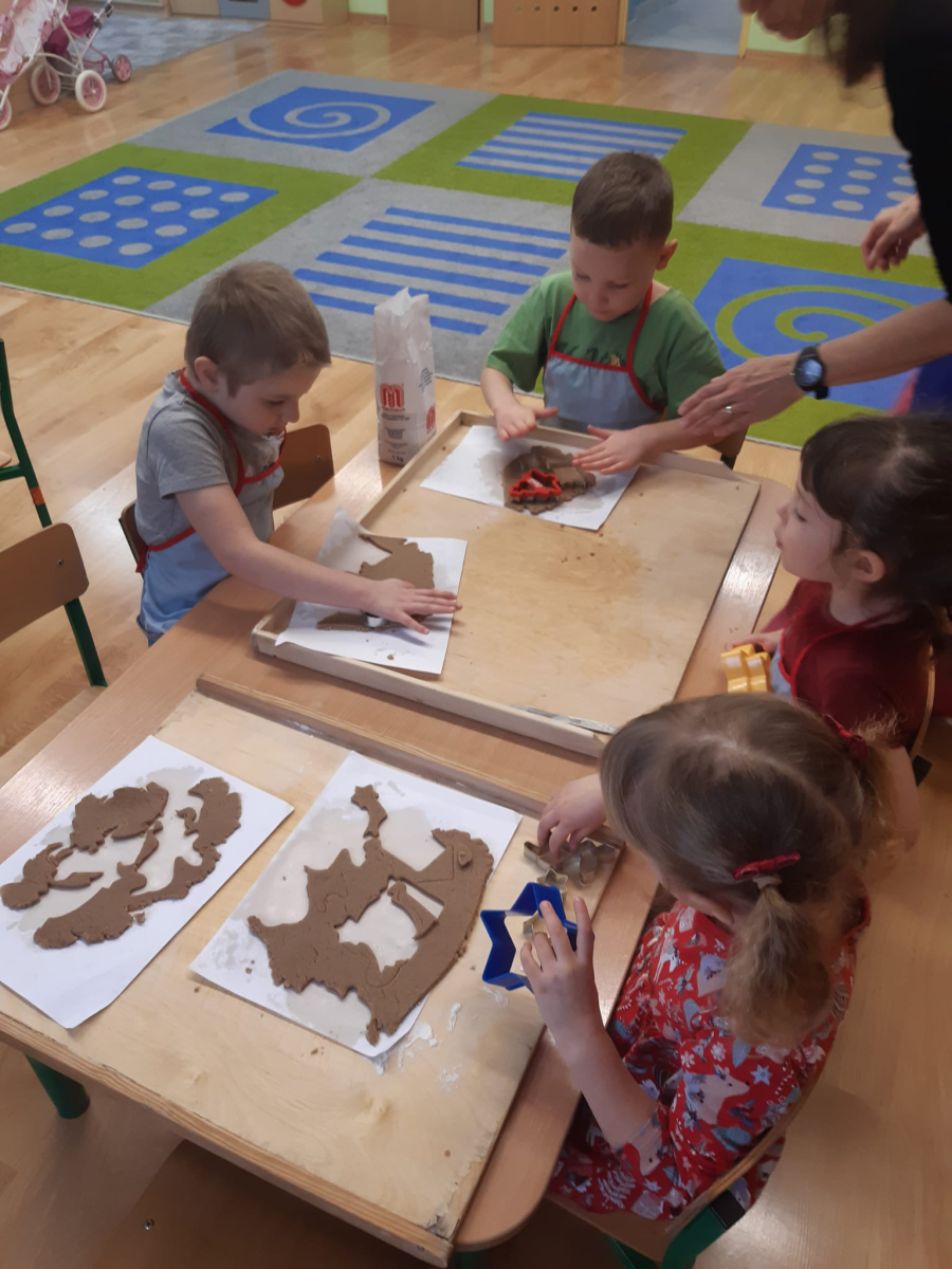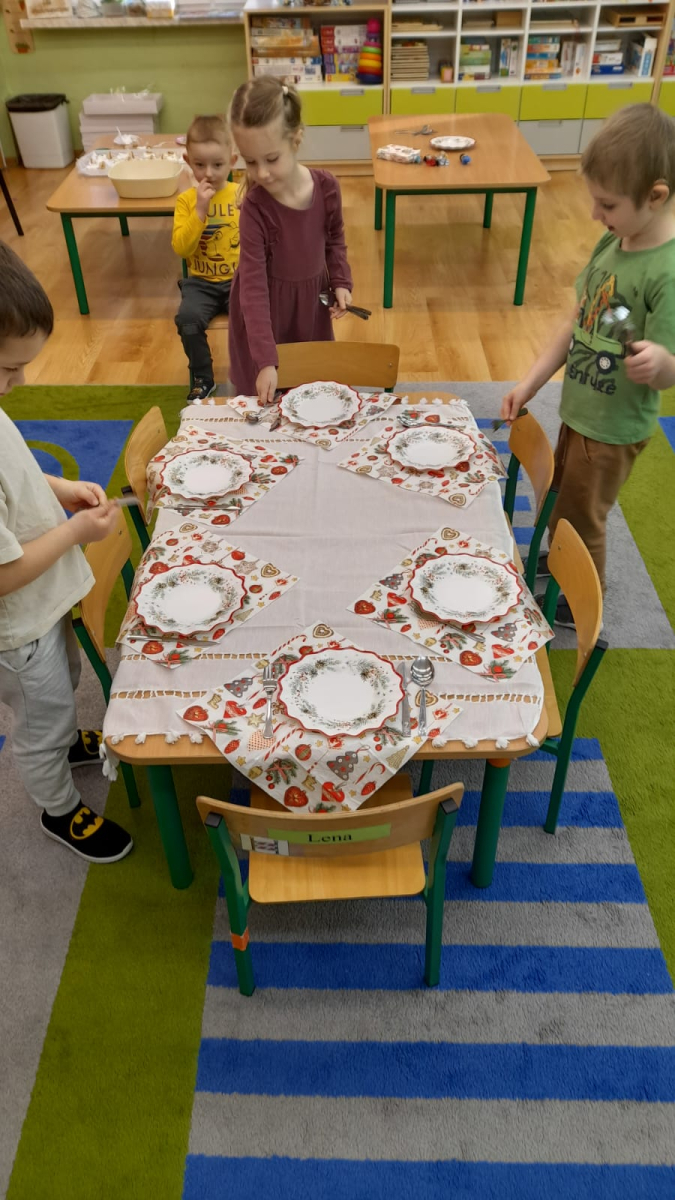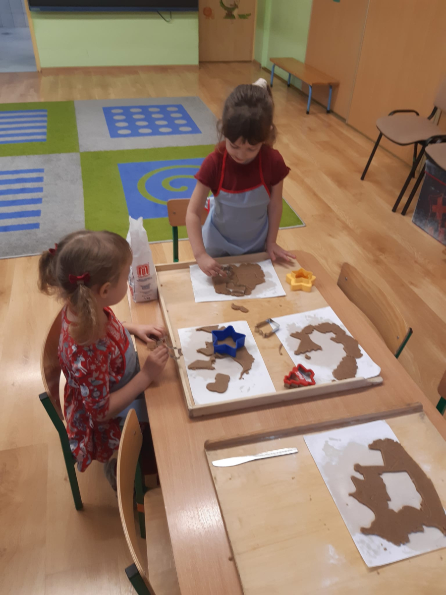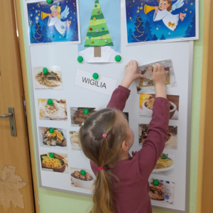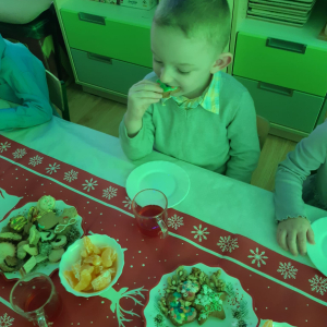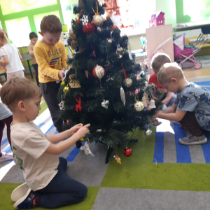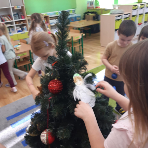 Dla dzieci nie tylko święta są wyjątkowe ale również przygotowania do nich są niezwykłe i pełne nietypowych wydarzeń. Przedszkolaki uczyły się w tym czasie kultywować tradycje, przygotowując świąteczne smakołyki, robiąc własnoręcznie ozdoby i ubierając choinkę. Wdrażały się do podtrzymywania pięknego zwyczaju składania życzeń, odwiedzając znajomych czy wysyłając kartki świąteczne z życzeniami. Poznawały też tradycje związane z wigilijnym stołem. Nie zabrakło też porządków świątecznych w sali, które kształtowały w nich umiejętność współdziałania i współodpowiedzialności za przestrzeń, w której funkcjonują jak mała przedszkolna rodzinka. Wszystko to było dla dzieci doświadczeniami wzbogacającymi ich wiedzę i umiejętności ale przede wszystkim sprawiało Zajączkom ogromną radość i satysfakcję. Uwieńczeniem czasu przygotowań była dla dzieci uroczysta wigilijka przedszkolna podczas której śpiewały kolędy, przełamały się opłatkiem, częstowały się smakołykami i spędzały czas na beztroskiej zabawie.