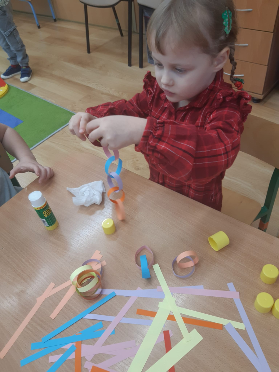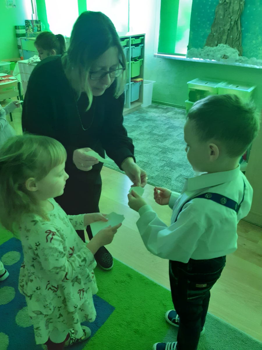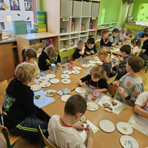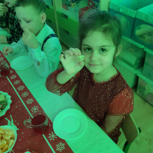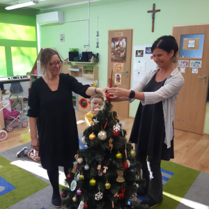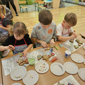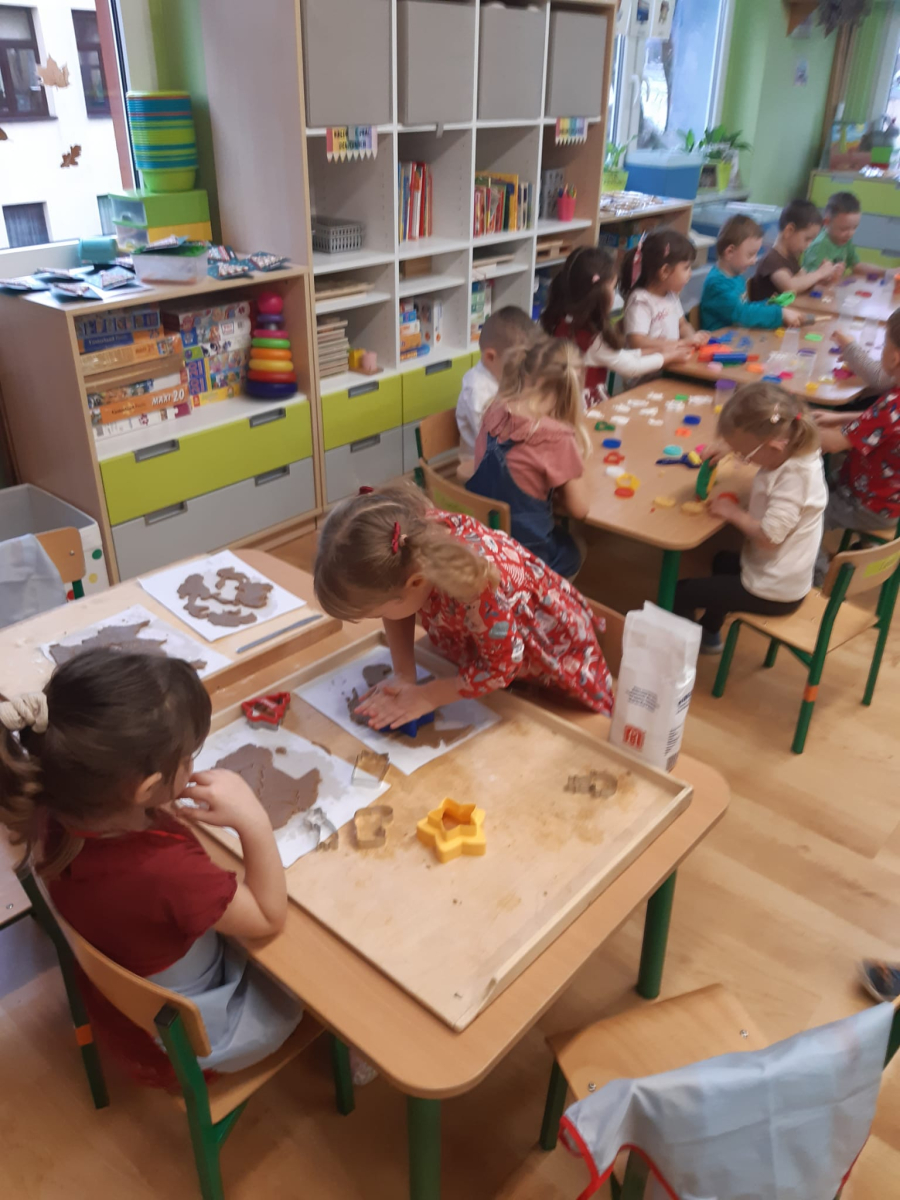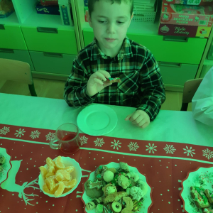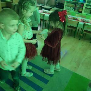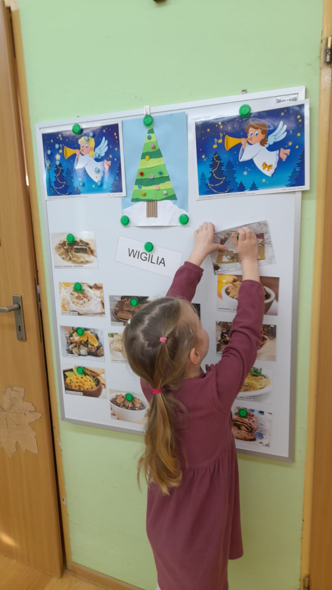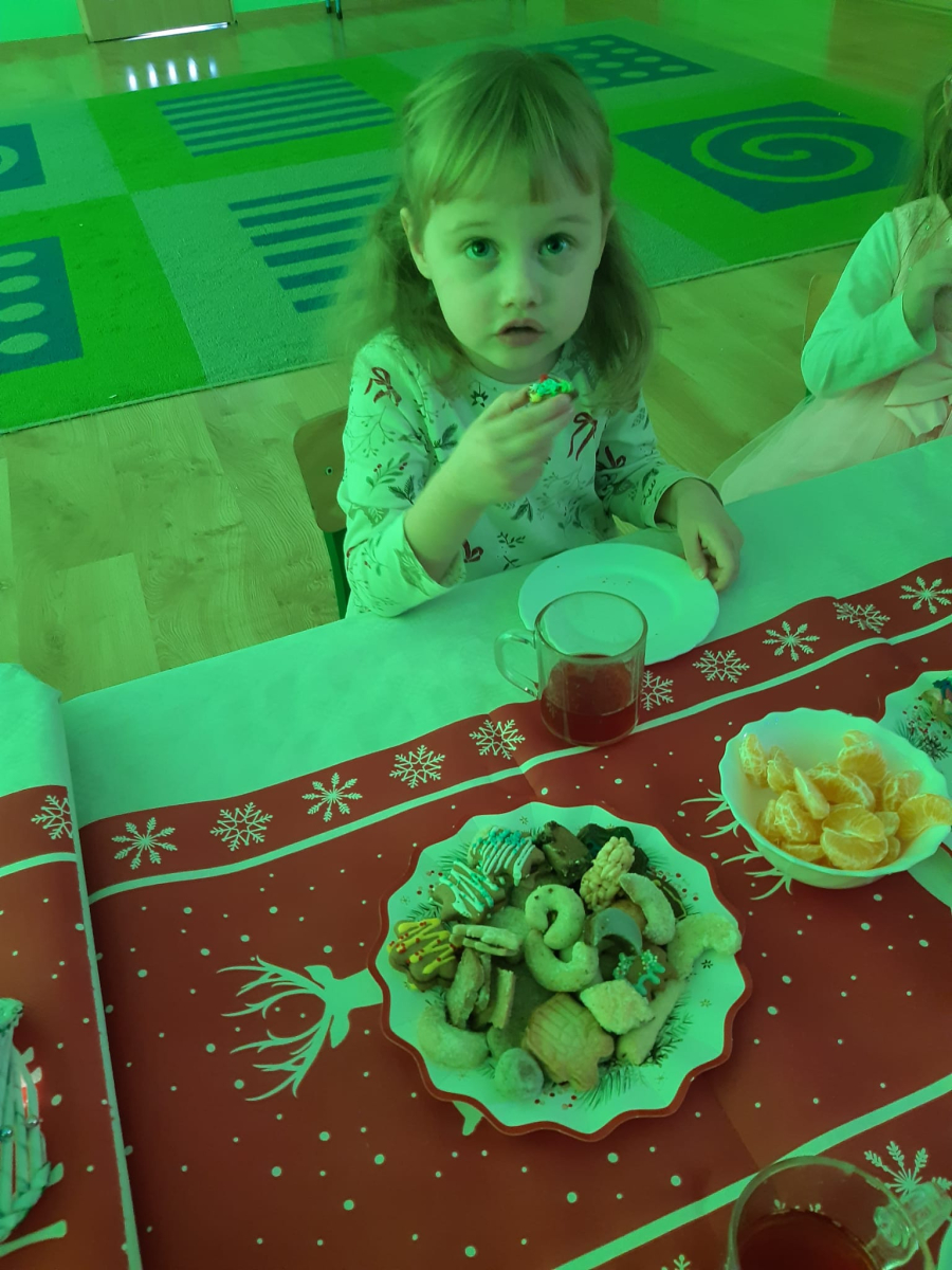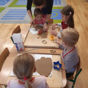 Dla dzieci nie tylko święta są wyjątkowe ale również przygotowania do nich są niezwykłe i pełne nietypowych wydarzeń. Przedszkolaki uczyły się w tym czasie kultywować tradycje, przygotowując świąteczne smakołyki, robiąc własnoręcznie ozdoby i ubierając choinkę. Wdrażały się do podtrzymywania pięknego zwyczaju składania życzeń, odwiedzając znajomych czy wysyłając kartki świąteczne z życzeniami. Poznawały też tradycje związane z wigilijnym stołem. Nie zabrakło też porządków świątecznych w sali, które kształtowały w nich umiejętność współdziałania i współodpowiedzialności za przestrzeń, w której funkcjonują jak mała przedszkolna rodzinka. Wszystko to było dla dzieci doświadczeniami wzbogacającymi ich wiedzę i umiejętności ale przede wszystkim sprawiało Zajączkom ogromną radość i satysfakcję. Uwieńczeniem czasu przygotowań była dla dzieci uroczysta wigilijka przedszkolna podczas której śpiewały kolędy, przełamały się opłatkiem, częstowały się smakołykami i spędzały czas na beztroskiej zabawie.