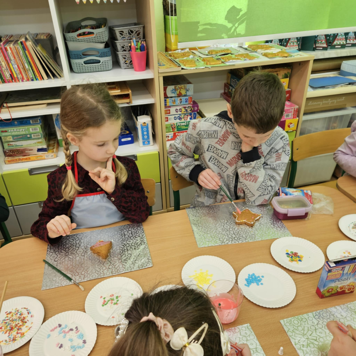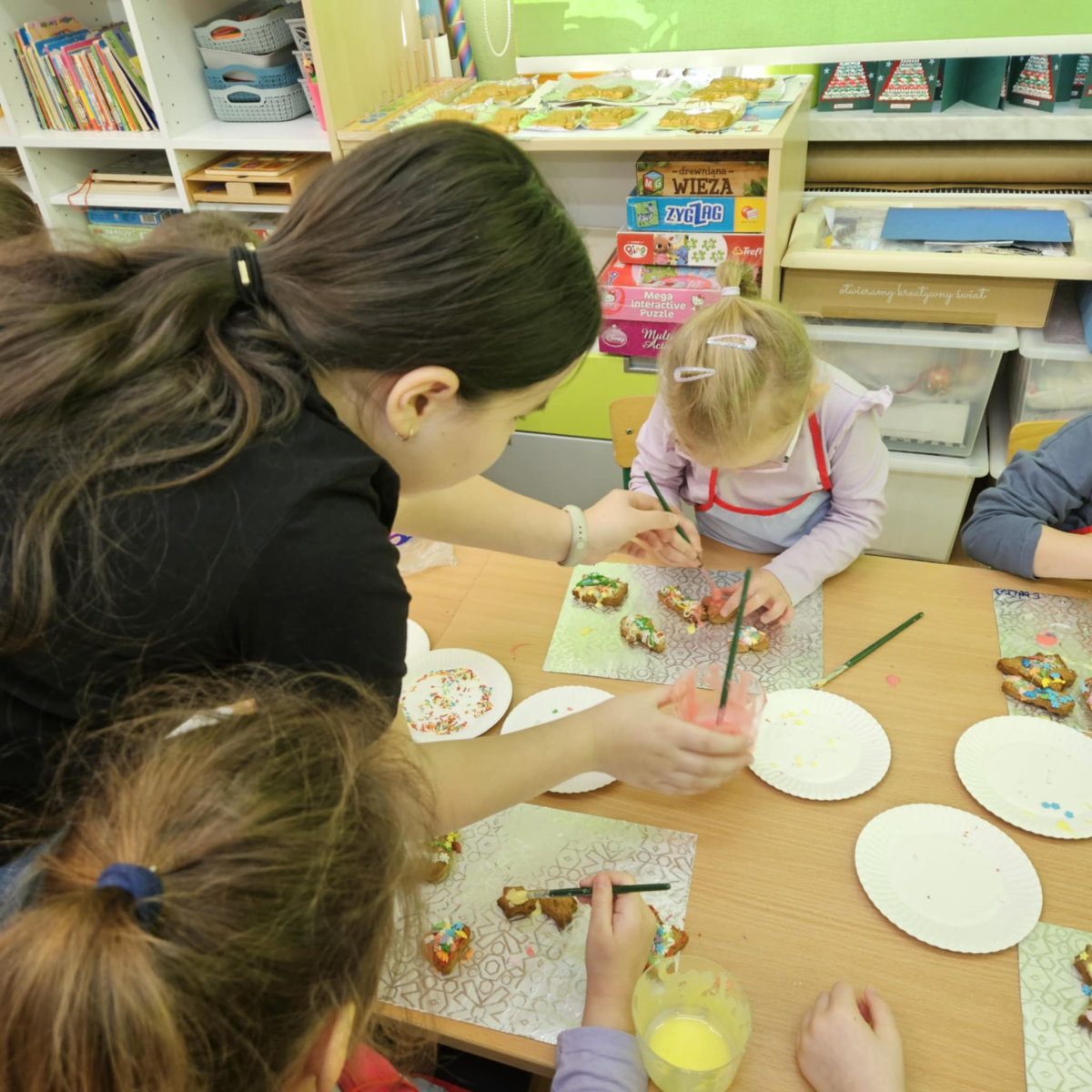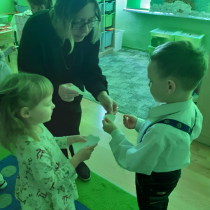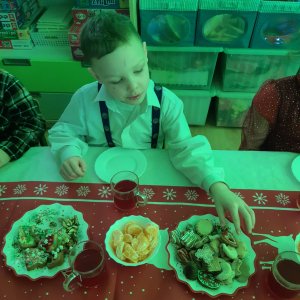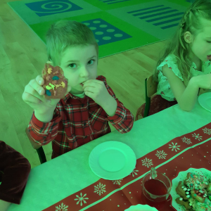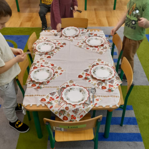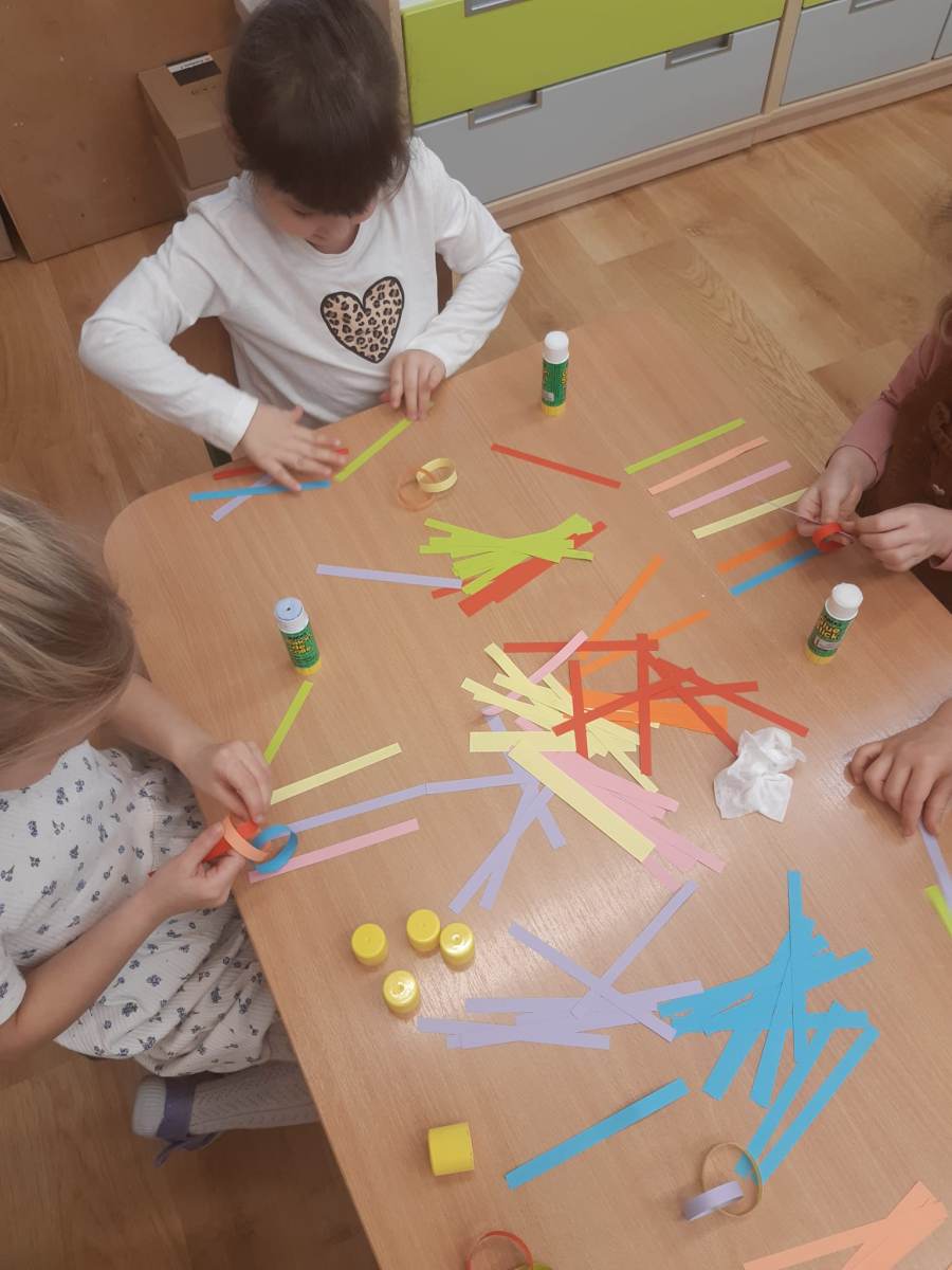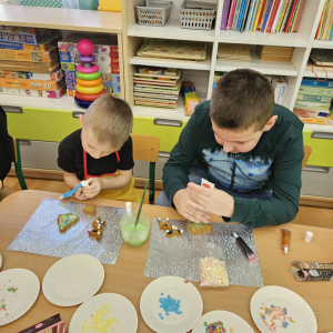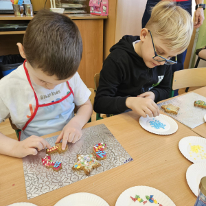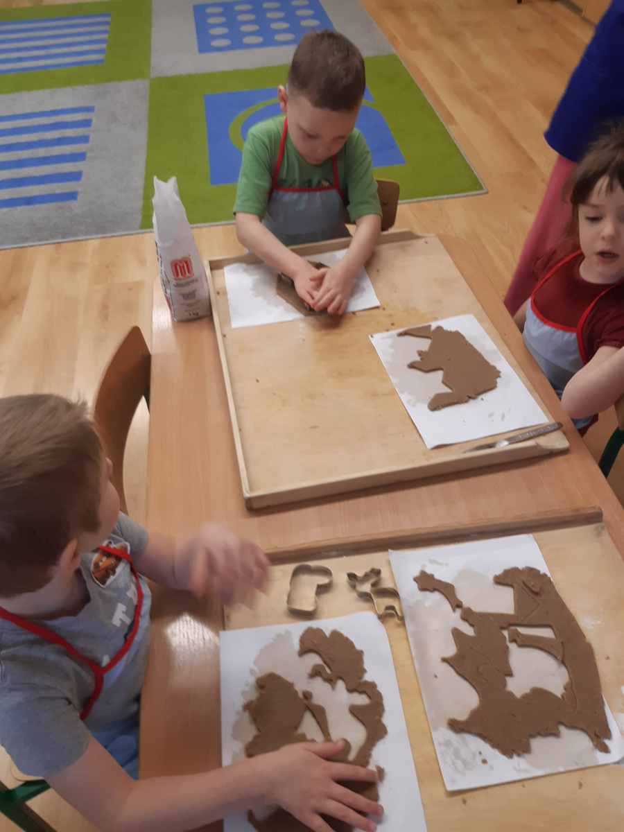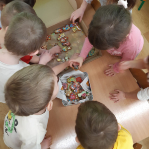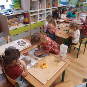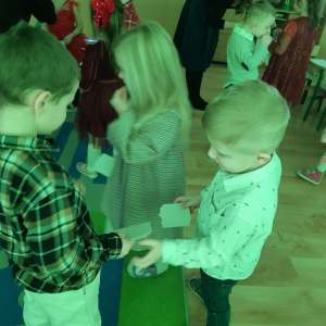Dla dzieci nie tylko święta są wyjątkowe ale również przygotowania do nich są niezwykłe i pełne nietypowych wydarzeń. Przedszkolaki uczyły się w tym czasie kultywować tradycje, przygotowując świąteczne smakołyki, robiąc własnoręcznie ozdoby i ubierając choinkę. Wdrażały się do podtrzymywania pięknego zwyczaju składania życzeń, odwiedzając znajomych czy wysyłając kartki świąteczne z życzeniami. Poznawały też tradycje związane z wigilijnym stołem. Nie zabrakło też porządków świątecznych w sali, które kształtowały w nich umiejętność współdziałania i współodpowiedzialności za przestrzeń, w której funkcjonują jak mała przedszkolna rodzinka. Wszystko to było dla dzieci doświadczeniami wzbogacającymi ich wiedzę i umiejętności ale przede wszystkim sprawiało Zajączkom ogromną radość i satysfakcję. Uwieńczeniem czasu przygotowań była dla dzieci uroczysta wigilijka przedszkolna podczas której śpiewały kolędy, przełamały się opłatkiem, częstowały się smakołykami i spędzały czas na beztroskiej zabawie.