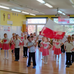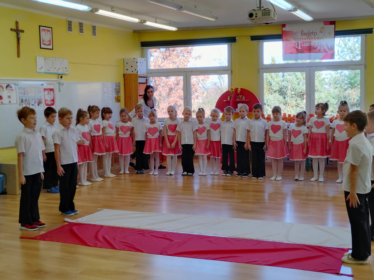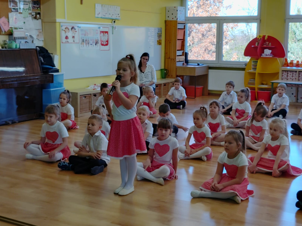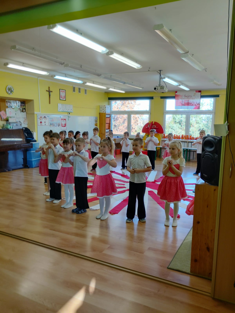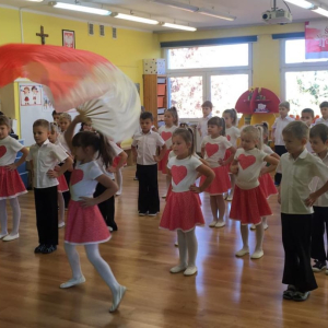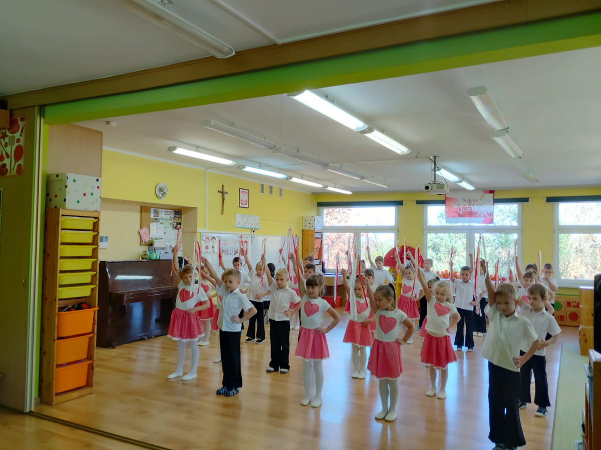 7 listopada 6-latki zaprezentowały program artystyczny z okazji Święta Niepodległości, przybliżając swoim młodszym kolegom znaczenie tego wyjątkowego dnia — dnia, w którym Polska po latach niewoli odzyskała wolność. Były wiersze, piosenki i tańce w barwach biało-czerwonych, pełne radości i dumy z bycia Polakiem.