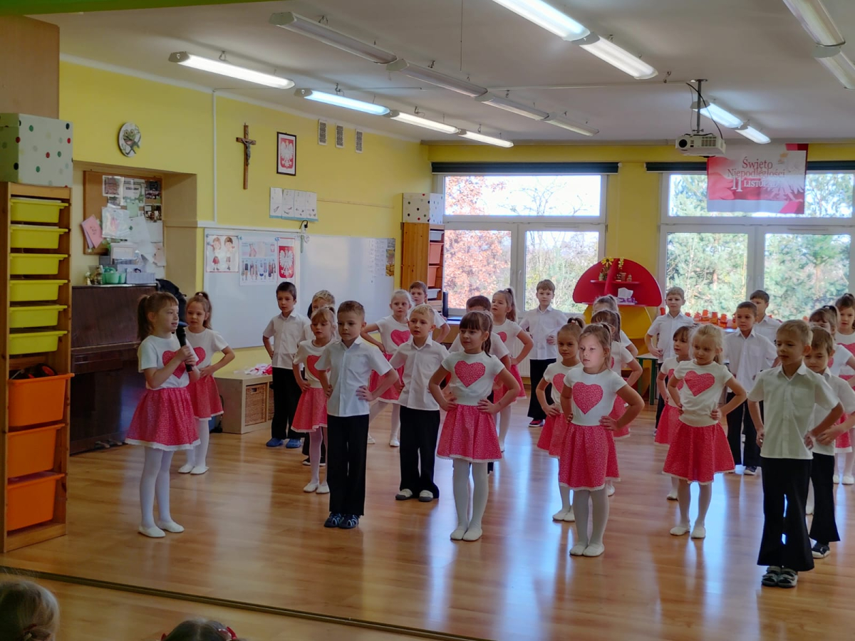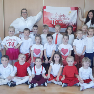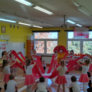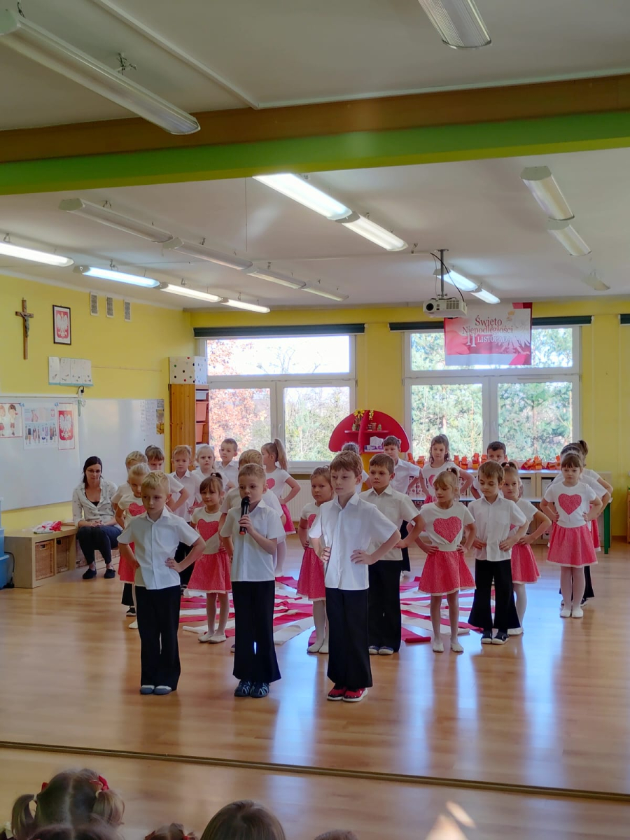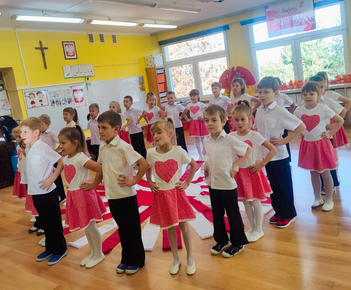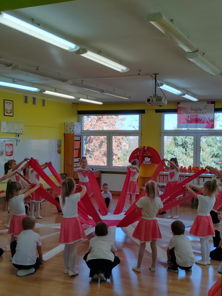 7 listopada 6-latki zaprezentowały program artystyczny z okazji Święta Niepodległości, przybliżając swoim młodszym kolegom znaczenie tego wyjątkowego dnia — dnia, w którym Polska po latach niewoli odzyskała wolność. Były wiersze, piosenki i tańce w barwach biało-czerwonych, pełne radości i dumy z bycia Polakiem.