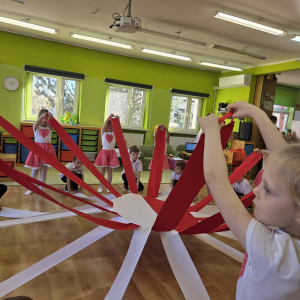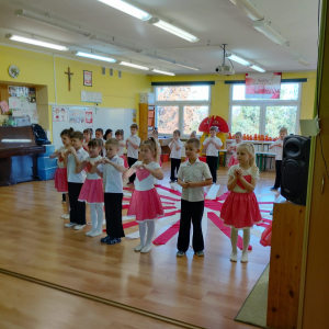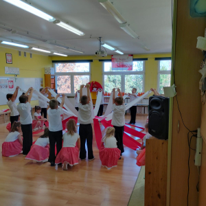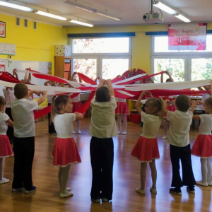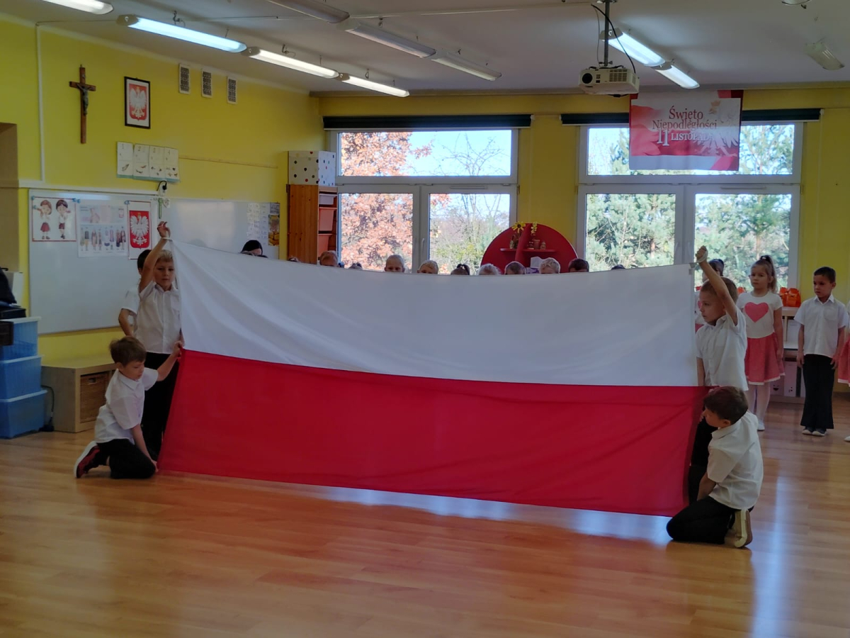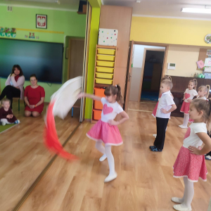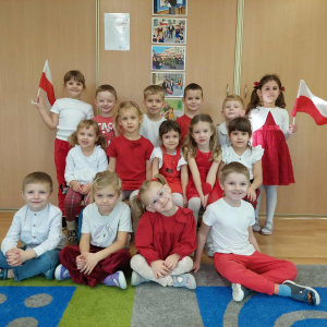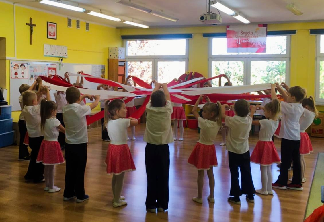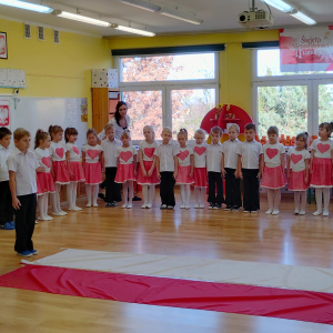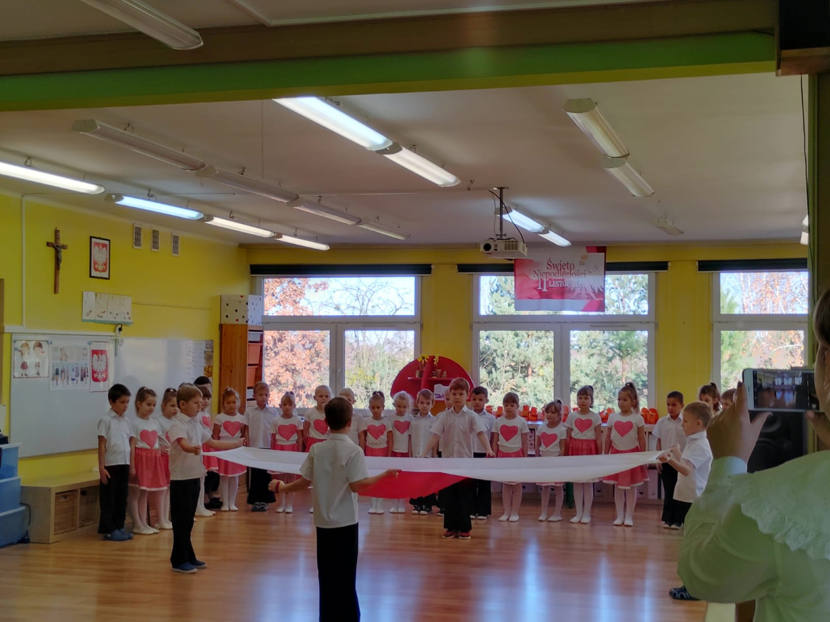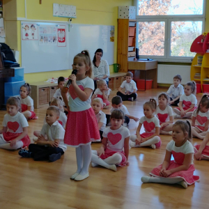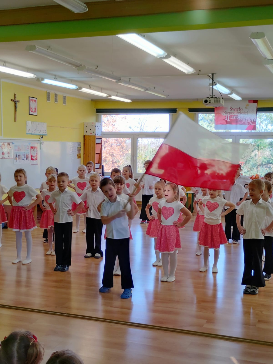 7 listopada 6-latki zaprezentowały program artystyczny z okazji Święta Niepodległości, przybliżając swoim młodszym kolegom znaczenie tego wyjątkowego dnia — dnia, w którym Polska po latach niewoli odzyskała wolność. Były wiersze, piosenki i tańce w barwach biało-czerwonych, pełne radości i dumy z bycia Polakiem.