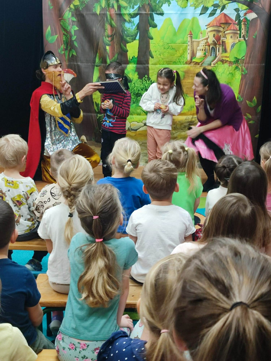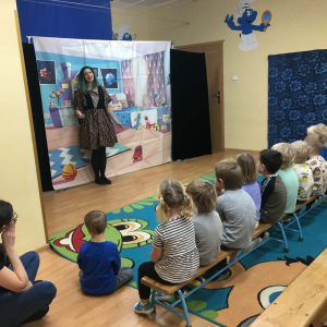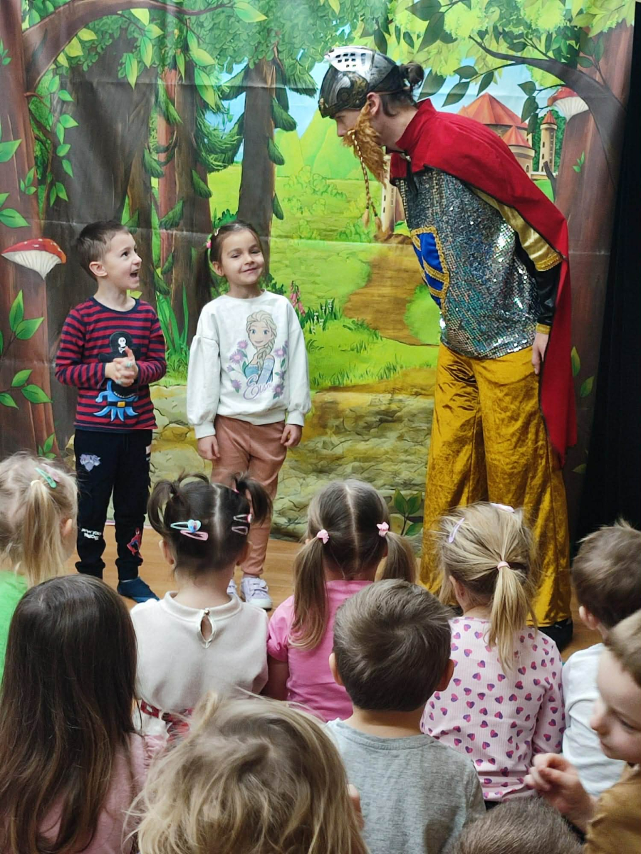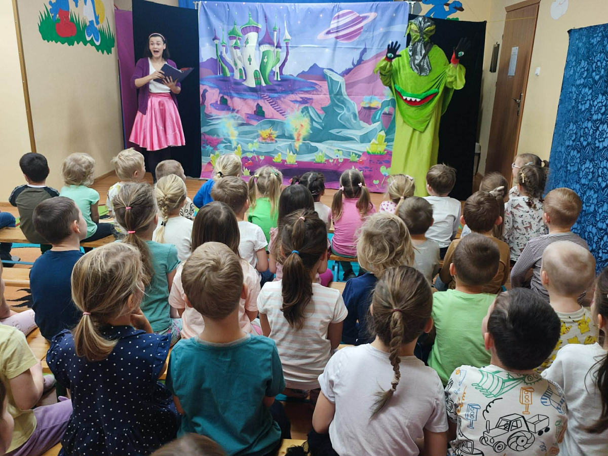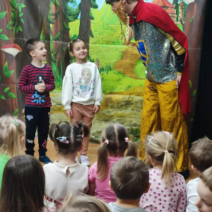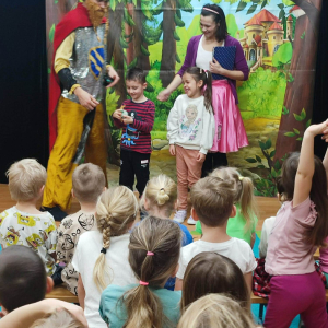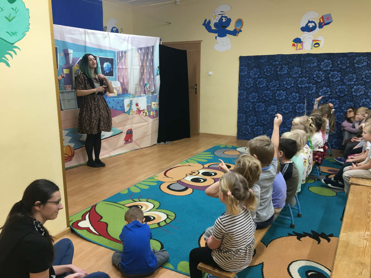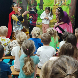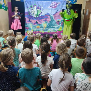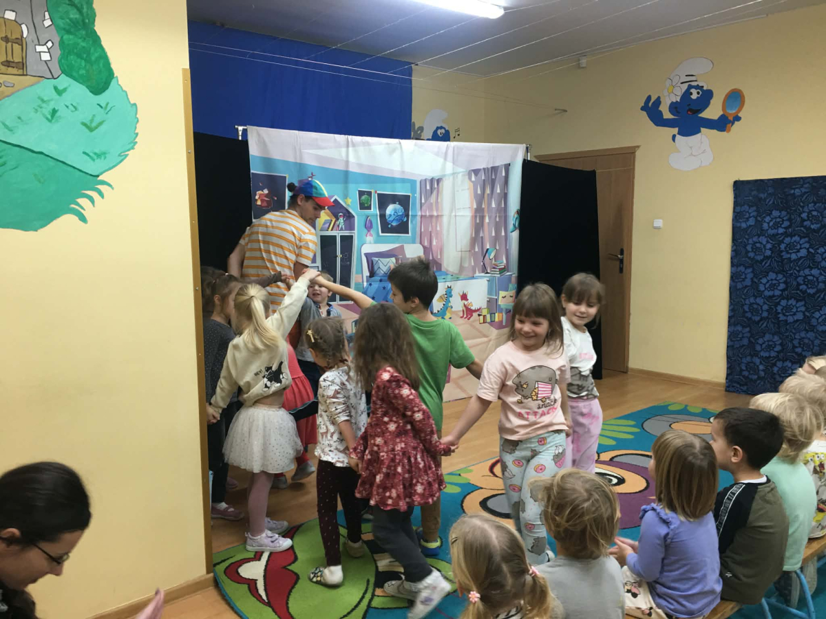 W naszym przedszkolu gościliśmy Teatr Kokon z niezwykłym spektaklem „Wyobraźnia”. Przedstawienie opowiadało historię dziewczynki, która… nie lubiła czytać. Książki wydawały jej się nudne i trudne, dopóki pewnego dnia nie trafiła na tę jedną wyjątkową – taką, która odmieniła wszystko. Wraz z bohaterką dzieci wyruszyły w podróż do niezwykłych światów ukrytych między stronami książki. Każda kolejna przygoda pokazywała, że czytanie potrafi otworzyć drzwi do miejsc, o których wcześniej nawet nie śniliśmy, a wyobraźnia jest darem, który drzemie w każdym z nas. Spektakl był pełen ciepła, humoru i mądrych przesłań. Dzieci mogły zobaczyć, jak dzięki wyobraźni zwykły dzień zamienia się w fascynującą wyprawę, a książka staje się ,,przyjacielem''. To było piękne spotkanie ze sztuką i literaturą, które z pewnością zachęci naszych przedszkolaków do odkrywania bogatego świata ukrytego w książkach.