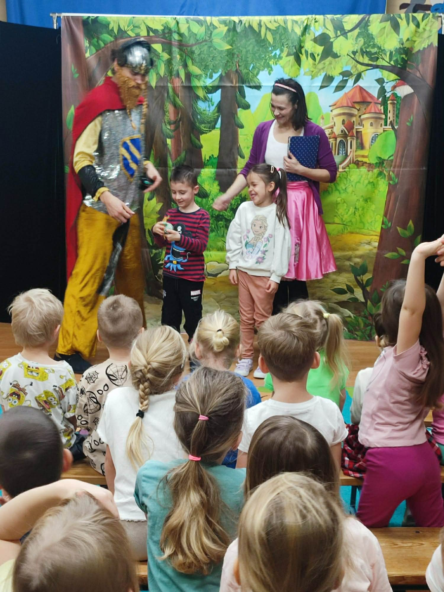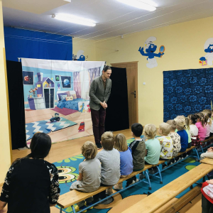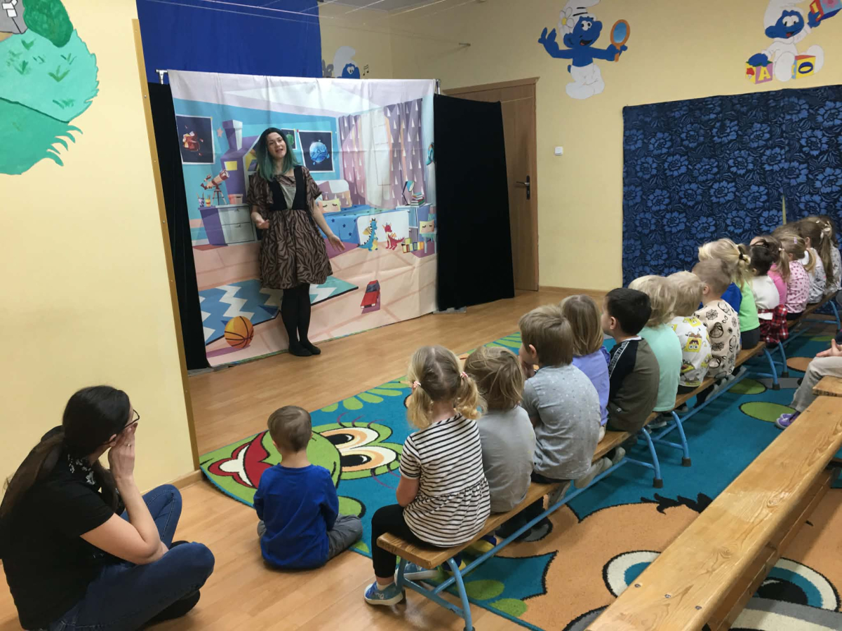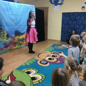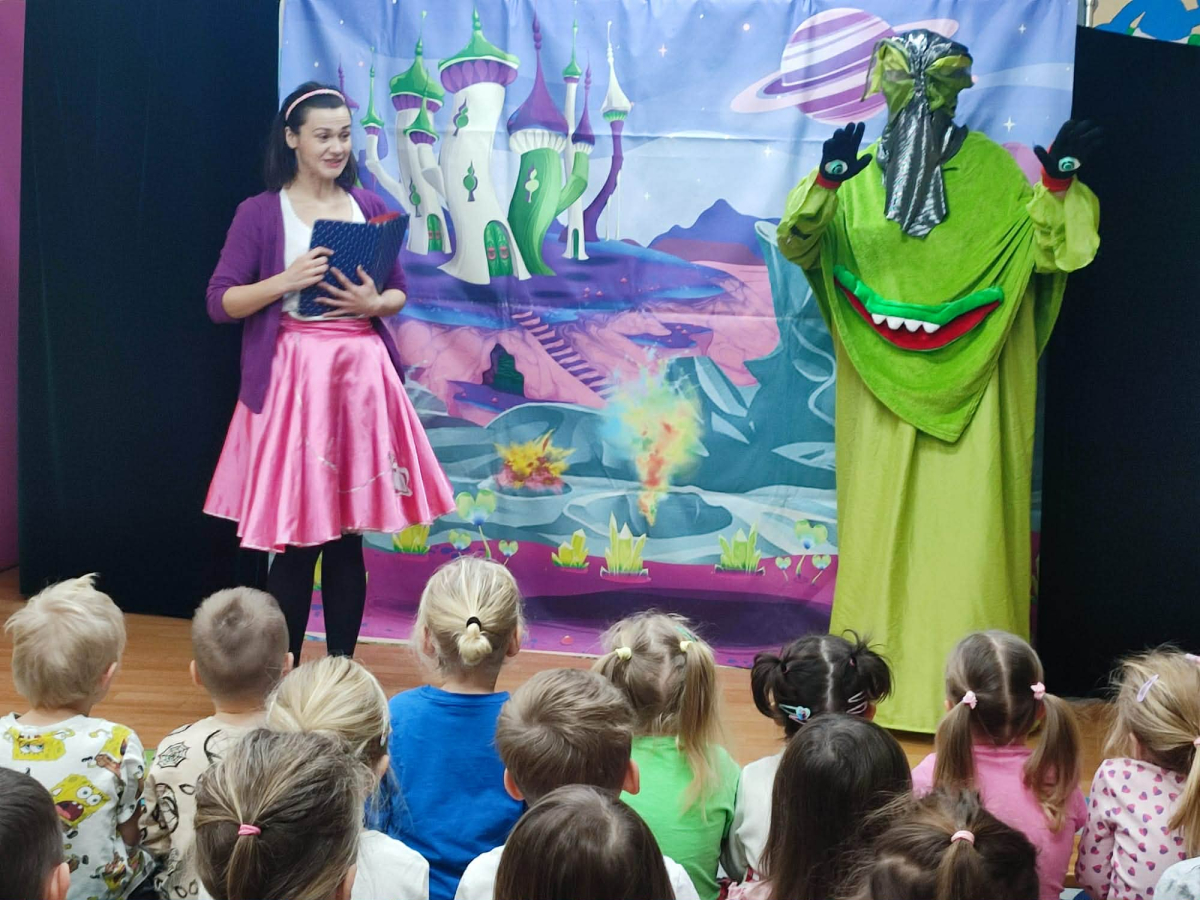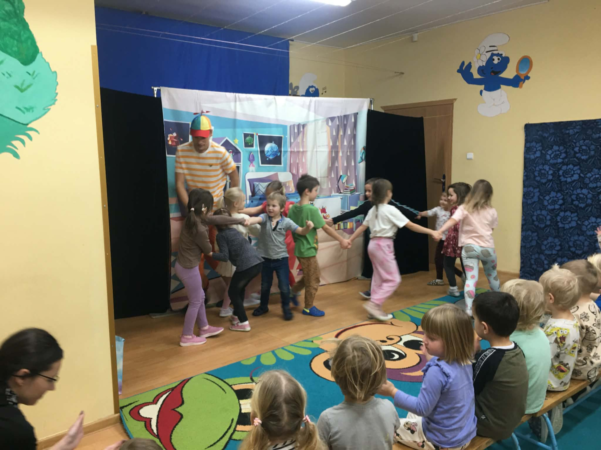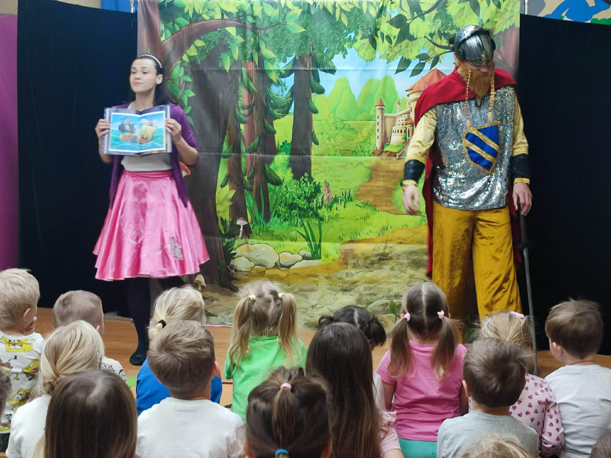 W naszym przedszkolu gościliśmy Teatr Kokon z niezwykłym spektaklem „Wyobraźnia”. Przedstawienie opowiadało historię dziewczynki, która… nie lubiła czytać. Książki wydawały jej się nudne i trudne, dopóki pewnego dnia nie trafiła na tę jedną wyjątkową – taką, która odmieniła wszystko. Wraz z bohaterką dzieci wyruszyły w podróż do niezwykłych światów ukrytych między stronami książki. Każda kolejna przygoda pokazywała, że czytanie potrafi otworzyć drzwi do miejsc, o których wcześniej nawet nie śniliśmy, a wyobraźnia jest darem, który drzemie w każdym z nas. Spektakl był pełen ciepła, humoru i mądrych przesłań. Dzieci mogły zobaczyć, jak dzięki wyobraźni zwykły dzień zamienia się w fascynującą wyprawę, a książka staje się ,,przyjacielem''. To było piękne spotkanie ze sztuką i literaturą, które z pewnością zachęci naszych przedszkolaków do odkrywania bogatego świata ukrytego w książkach.