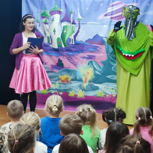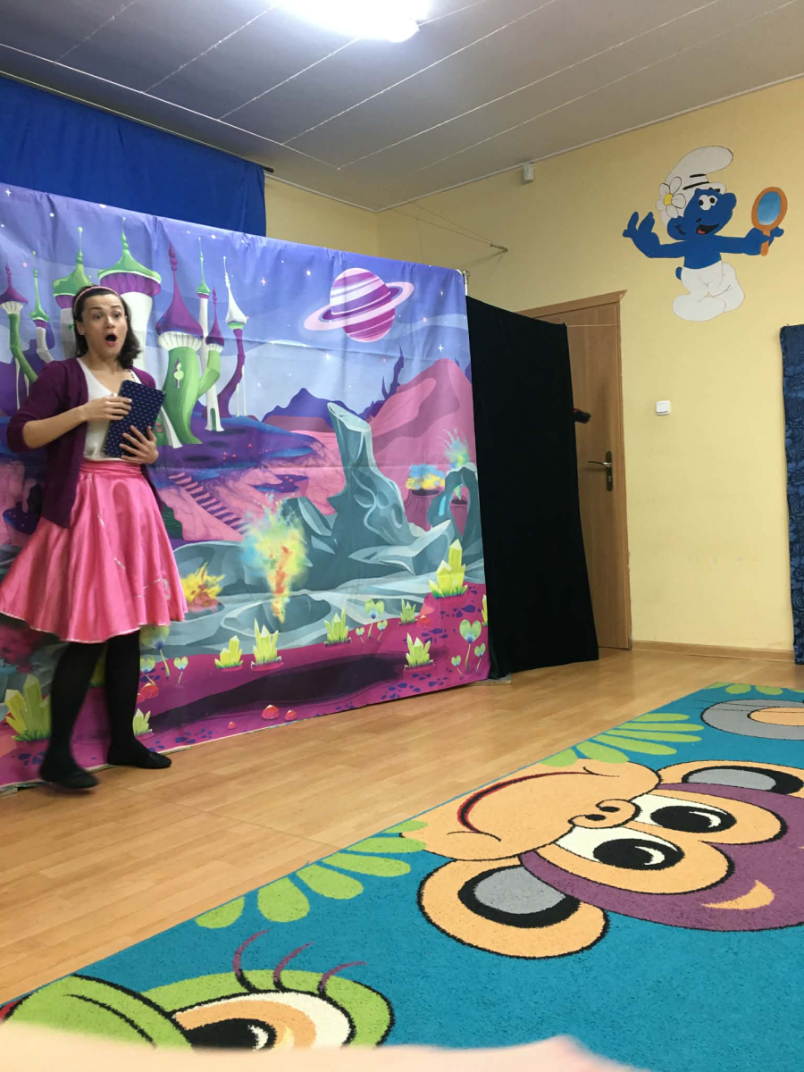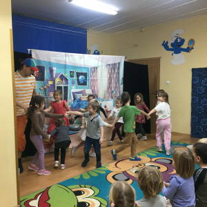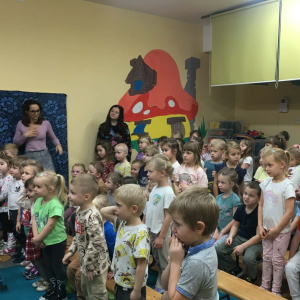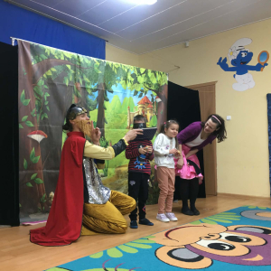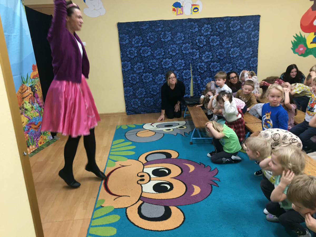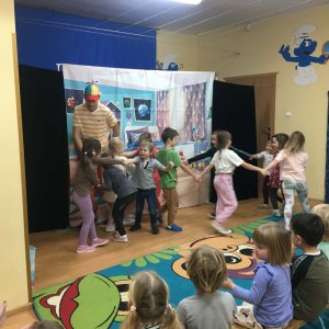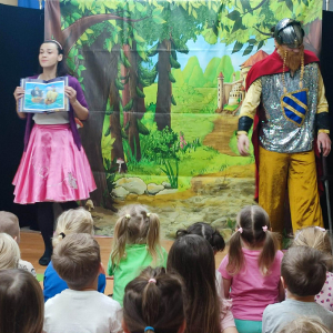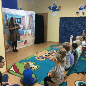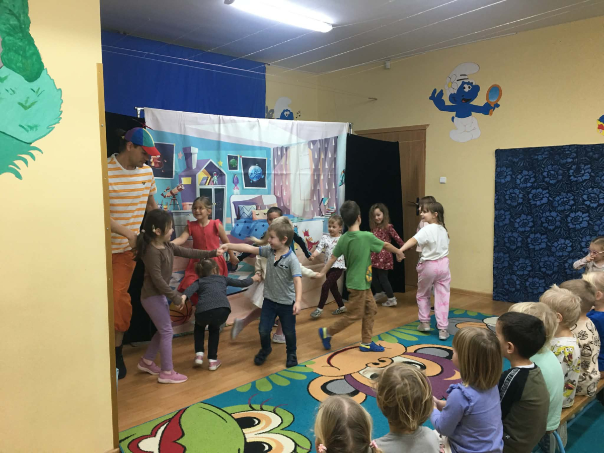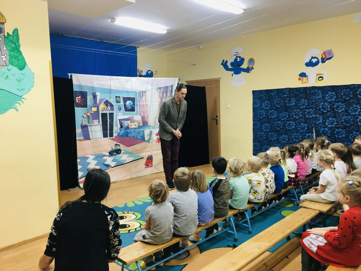 W naszym przedszkolu gościliśmy Teatr Kokon z niezwykłym spektaklem „Wyobraźnia”. Przedstawienie opowiadało historię dziewczynki, która… nie lubiła czytać. Książki wydawały jej się nudne i trudne, dopóki pewnego dnia nie trafiła na tę jedną wyjątkową – taką, która odmieniła wszystko. Wraz z bohaterką dzieci wyruszyły w podróż do niezwykłych światów ukrytych między stronami książki. Każda kolejna przygoda pokazywała, że czytanie potrafi otworzyć drzwi do miejsc, o których wcześniej nawet nie śniliśmy, a wyobraźnia jest darem, który drzemie w każdym z nas. Spektakl był pełen ciepła, humoru i mądrych przesłań. Dzieci mogły zobaczyć, jak dzięki wyobraźni zwykły dzień zamienia się w fascynującą wyprawę, a książka staje się ,,przyjacielem''. To było piękne spotkanie ze sztuką i literaturą, które z pewnością zachęci naszych przedszkolaków do odkrywania bogatego świata ukrytego w książkach.
