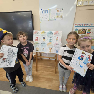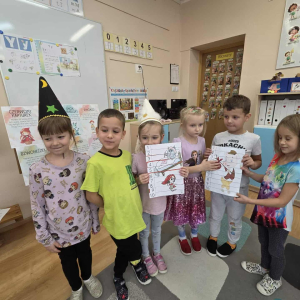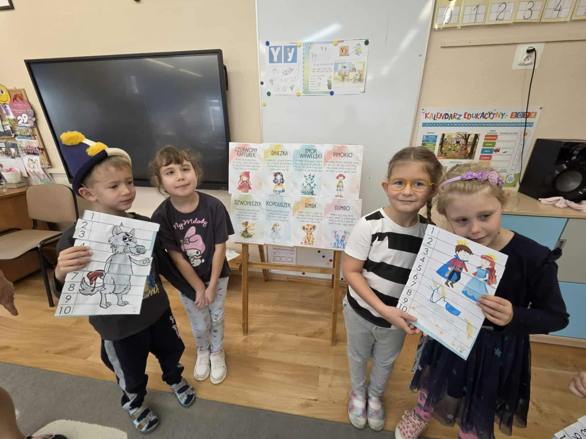 5 listopada nasze przedszkolaki wyruszyły w magiczną podróż do krainy bajek. To był dzień pełen radości! Dzieci z uwagą słuchały fragmentów znanych bajek, następnie z łatwością rozpoznawały ich tytuły oraz bohaterów. Z wielkim zaangażowaniem segregowały bajkowe rekwizyty i układały puzzle związane z ulubionymi postaciami. Ten wyjątkowy dzień był doskonałą okazją do świetnej zabawy i rozbudzania zainteresowań czytelniczych. Bajkowe przedpołudnie przyniosło przedszkolakom mnóstwo optymizmu i radości, a ich uśmiechy były najlepszym dowodem na to, jak bardzo się cieszyły z tego magicznego dnia.