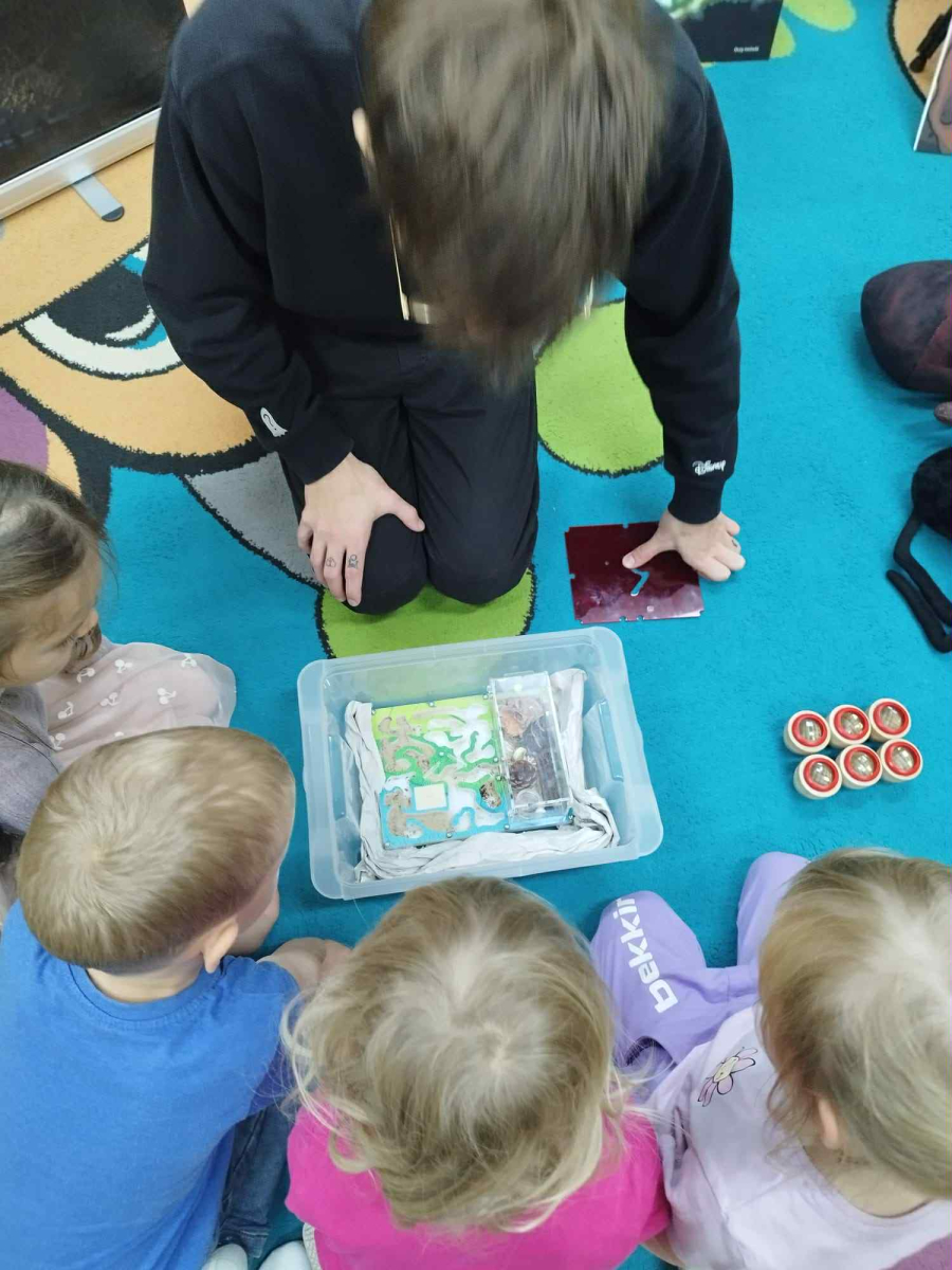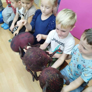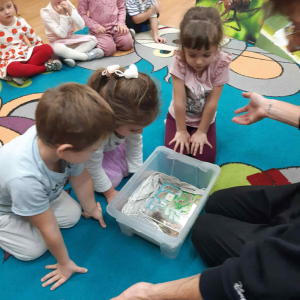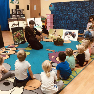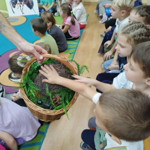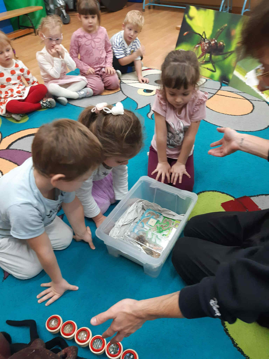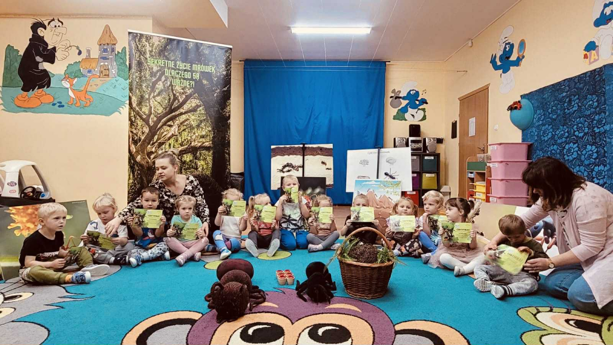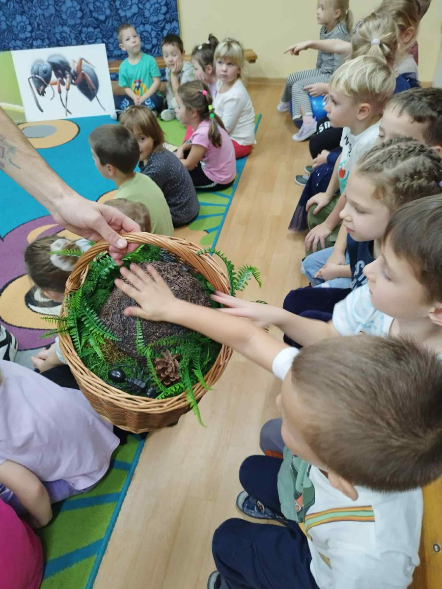 Nasze przedszkolaki wzięły udział w niezwykle ciekawych warsztatach edukacyjnych pt. „Sekretne życie mrówek” podczas których dzieci miały okazję poznać fascynujący świat tych małych, ale bardzo pracowitych owadów. Przedszkolaki dowiedziały się wielu interesujących informacji na temat różnych gatunków mrówek, ich kolorów, sposobów odżywiania oraz życia codziennego. Z ogromnym zainteresowaniem obserwowały żywe mrówki w specjalnych pojemnikach oraz miały niepowtarzalną okazję zobaczyć królową mrówek. Dzieci poznały także budowę mrówki, dowiedziały się, jak wyglądają podziemne korytarze i jak powstają mrówcze kopce. Warsztaty wzbudziły wiele emocji, pytań i ciekawości – z pewnością na długo zostaną w pamięci naszych małych odkrywców!