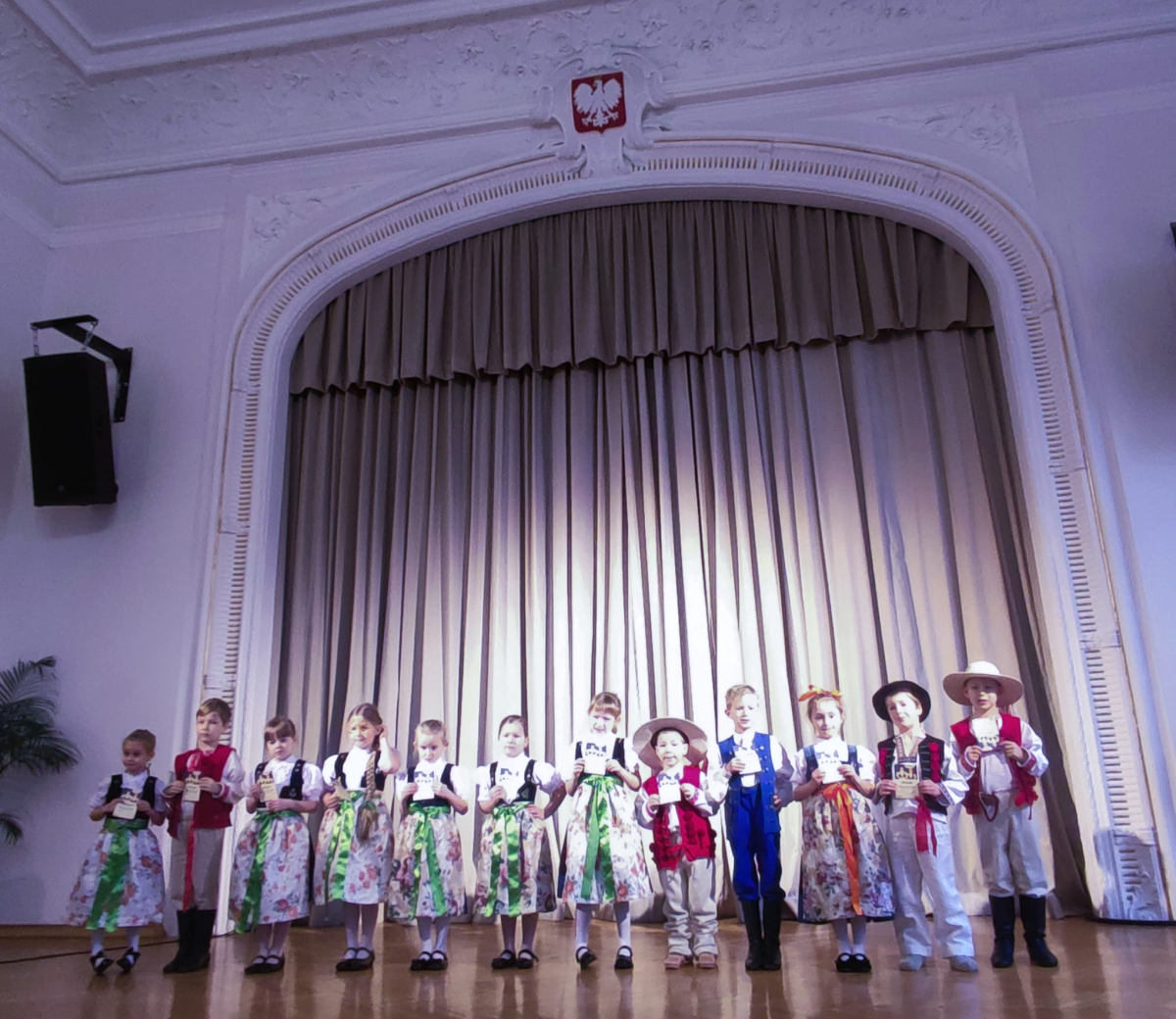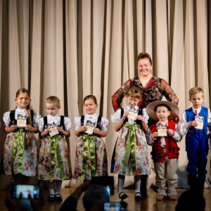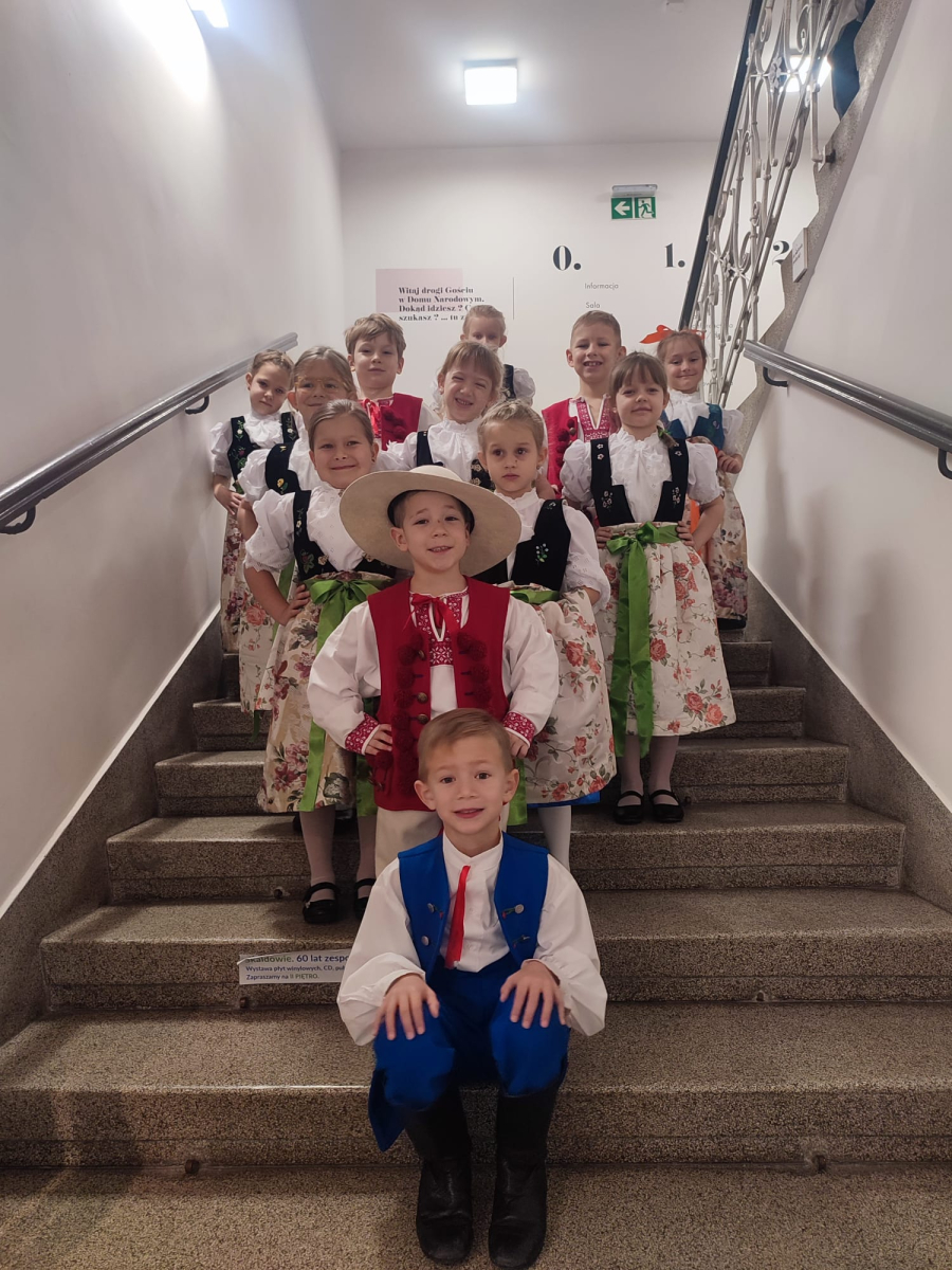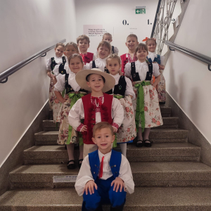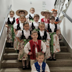 Ponadto nasze przedszkole otrzymało wyróżnienie za liczny udział, dbałość o stroje oraz wysoki i wyrównany poziom. Gratulujemy wszystkim dzieciom pięknej prezentacji na scenie. Jury zwróciło szczególną uwagę na doskonałe przygotowanie strojów, a także z uznaniem odnotowało tak liczny i pięknie przygotowany skład naszej grupy.
